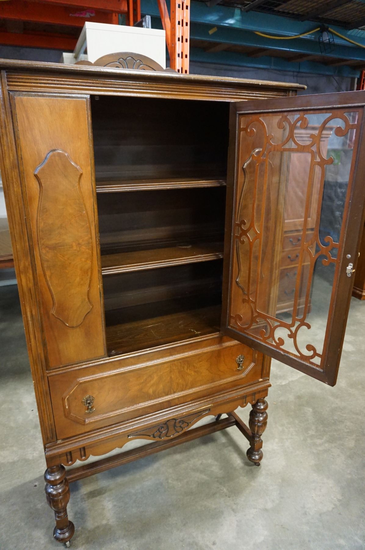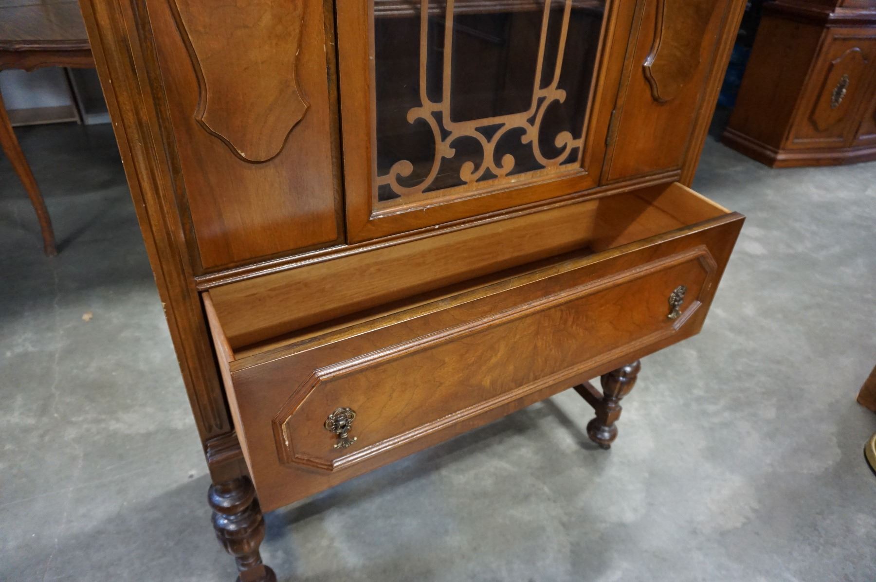 ANTIQUE WALNUT GLASS DOOR DISPLAY CABINET