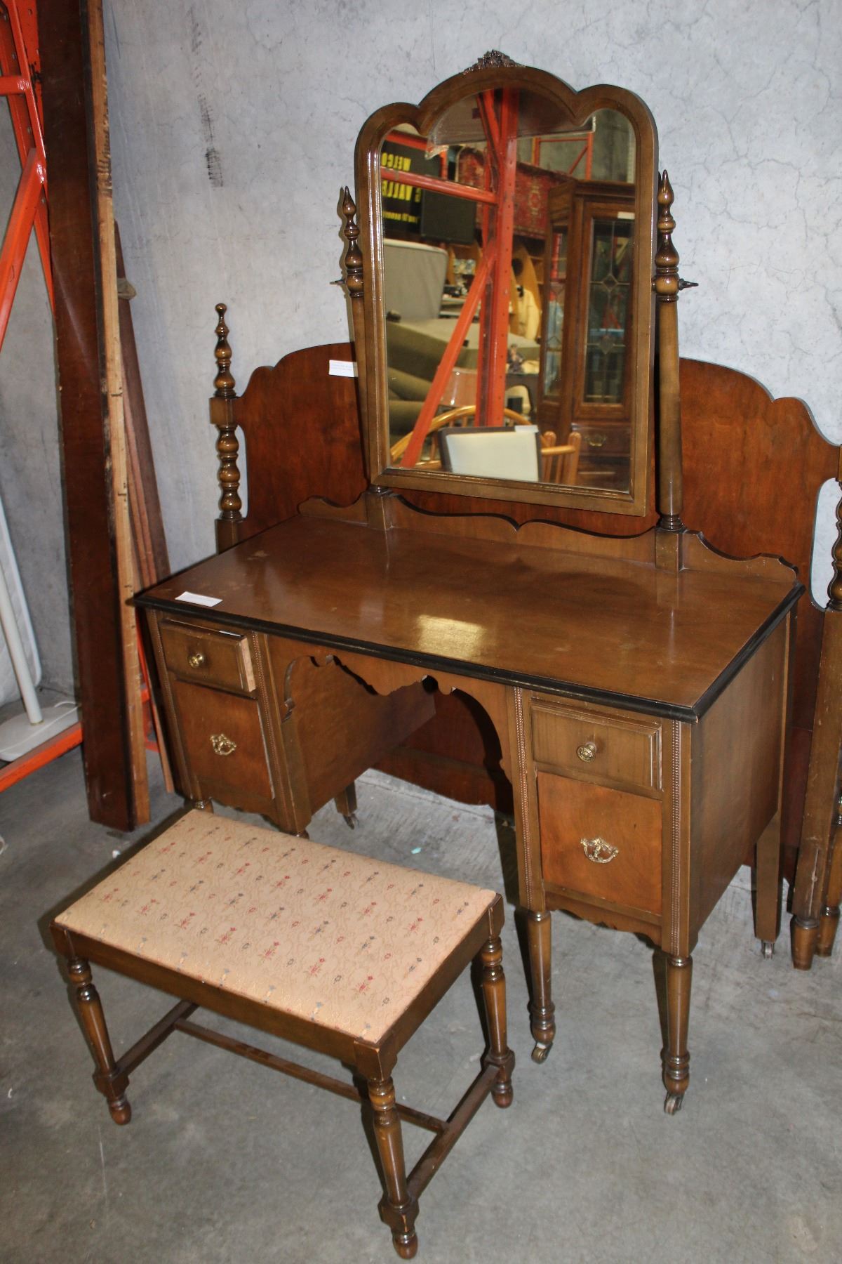 ANTIQUE WALNUT VANITY DRESSER WITH STOOL