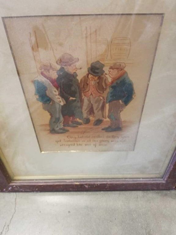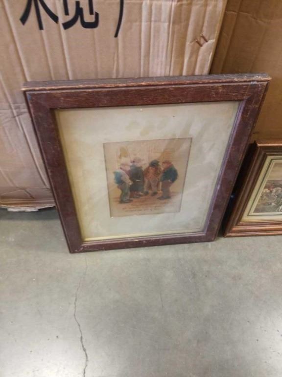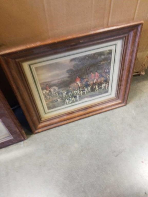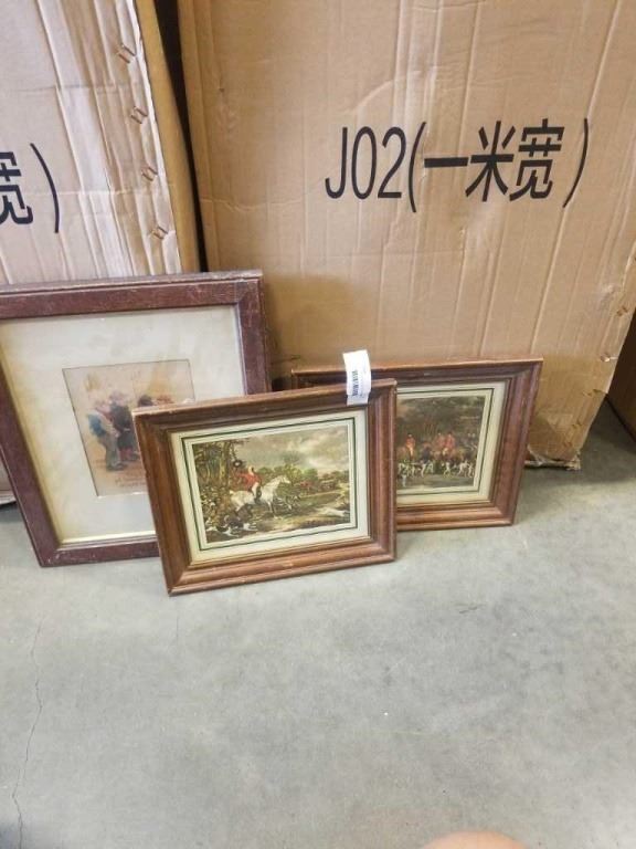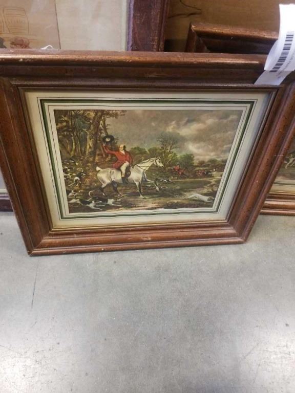 ANTIQUE WATERCOLOR PAINTING AND 2 REPRODUCTION HUNTING PRINTS