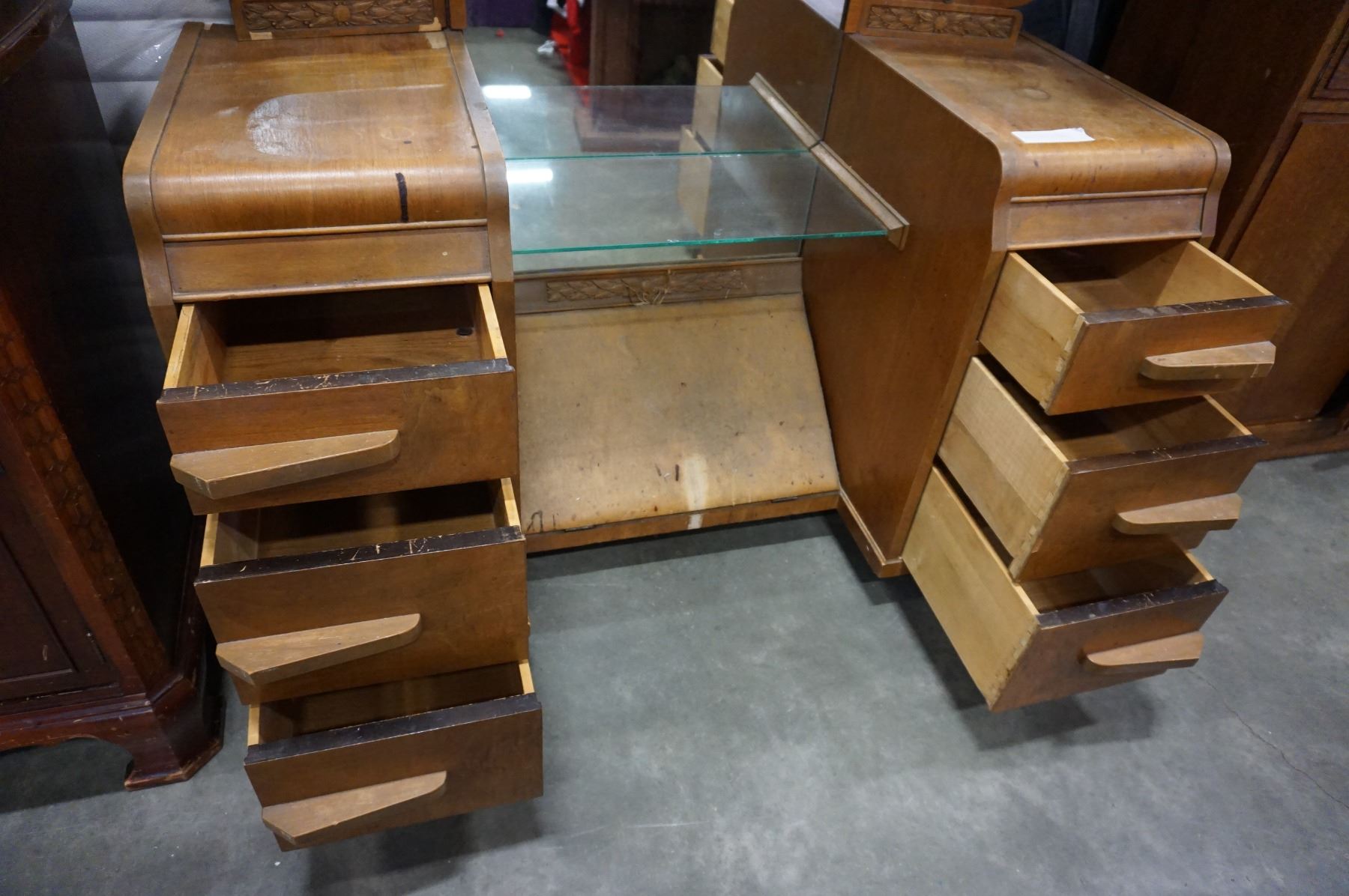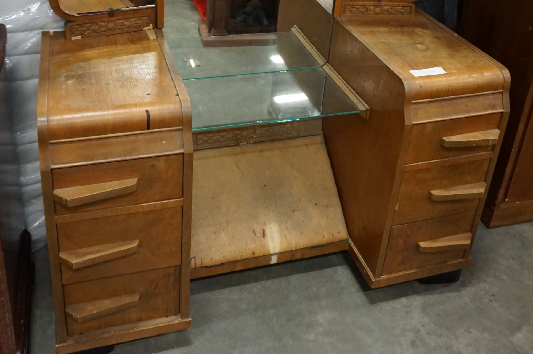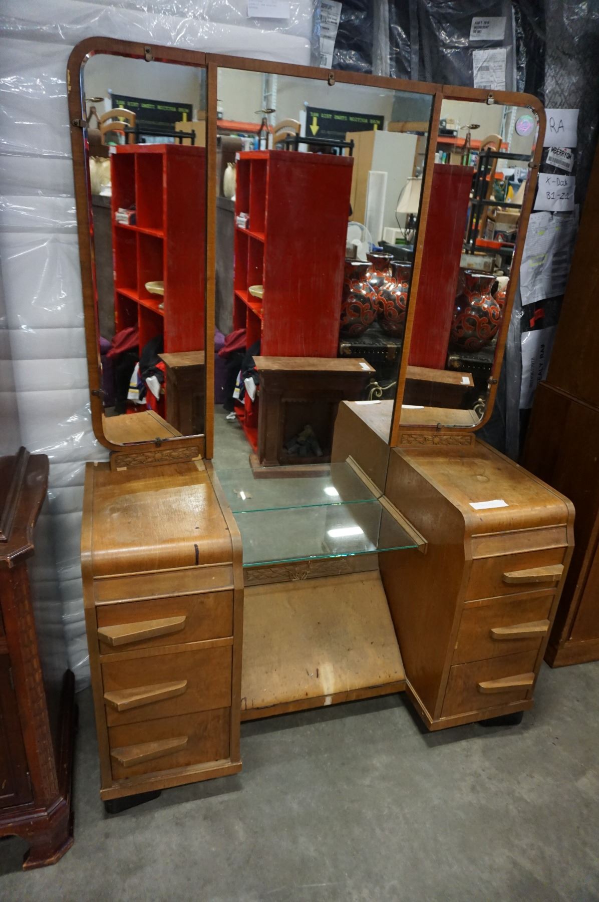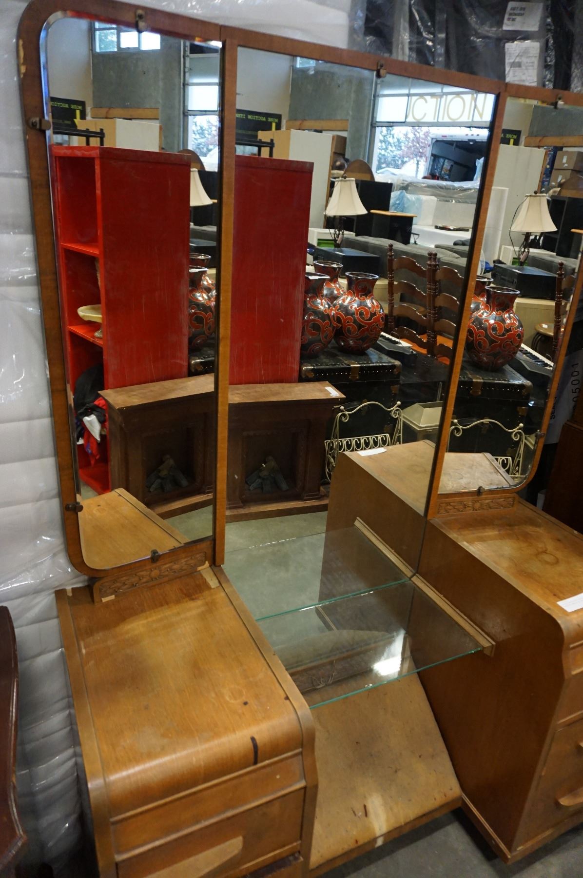 ANTIQUE WATERFALL DOUBLE PEDESTAL VANITY W/ MIRROR