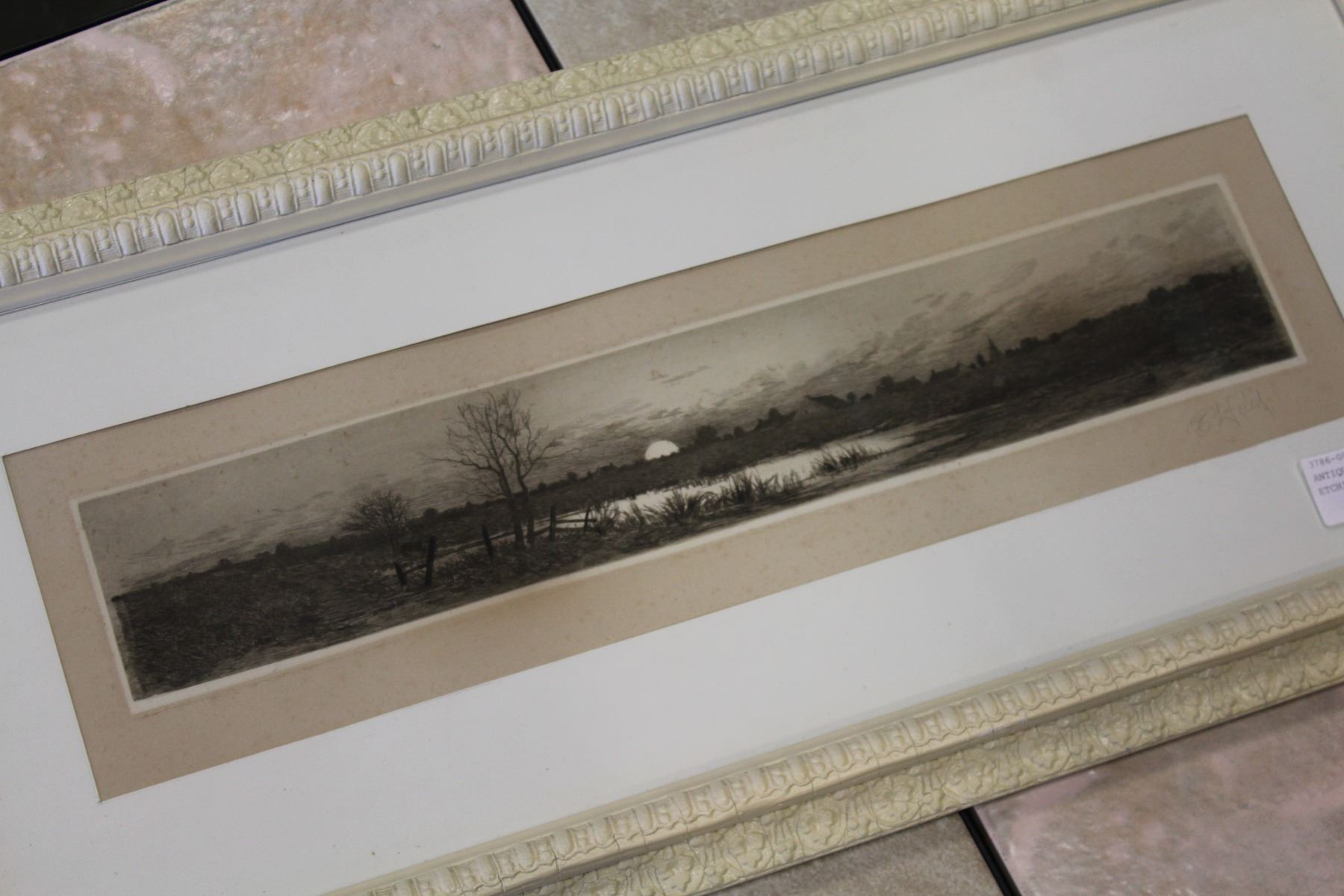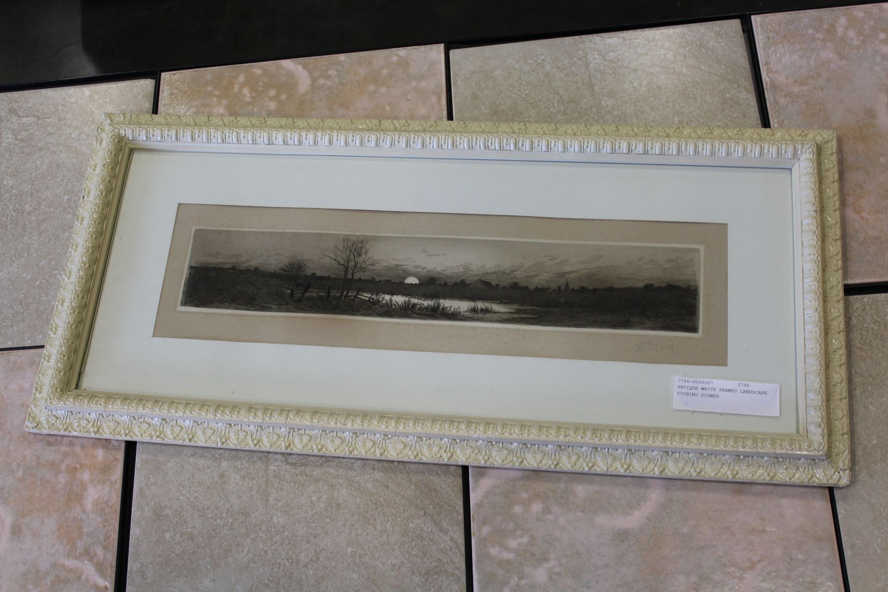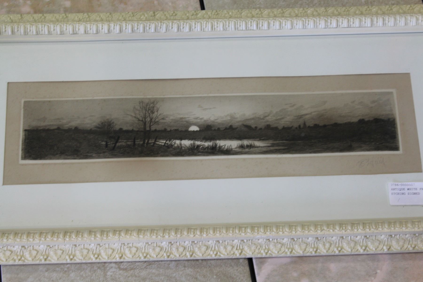 ANTIQUE WHITE FRAMED LANDSCAPE ETCHING SIGNED