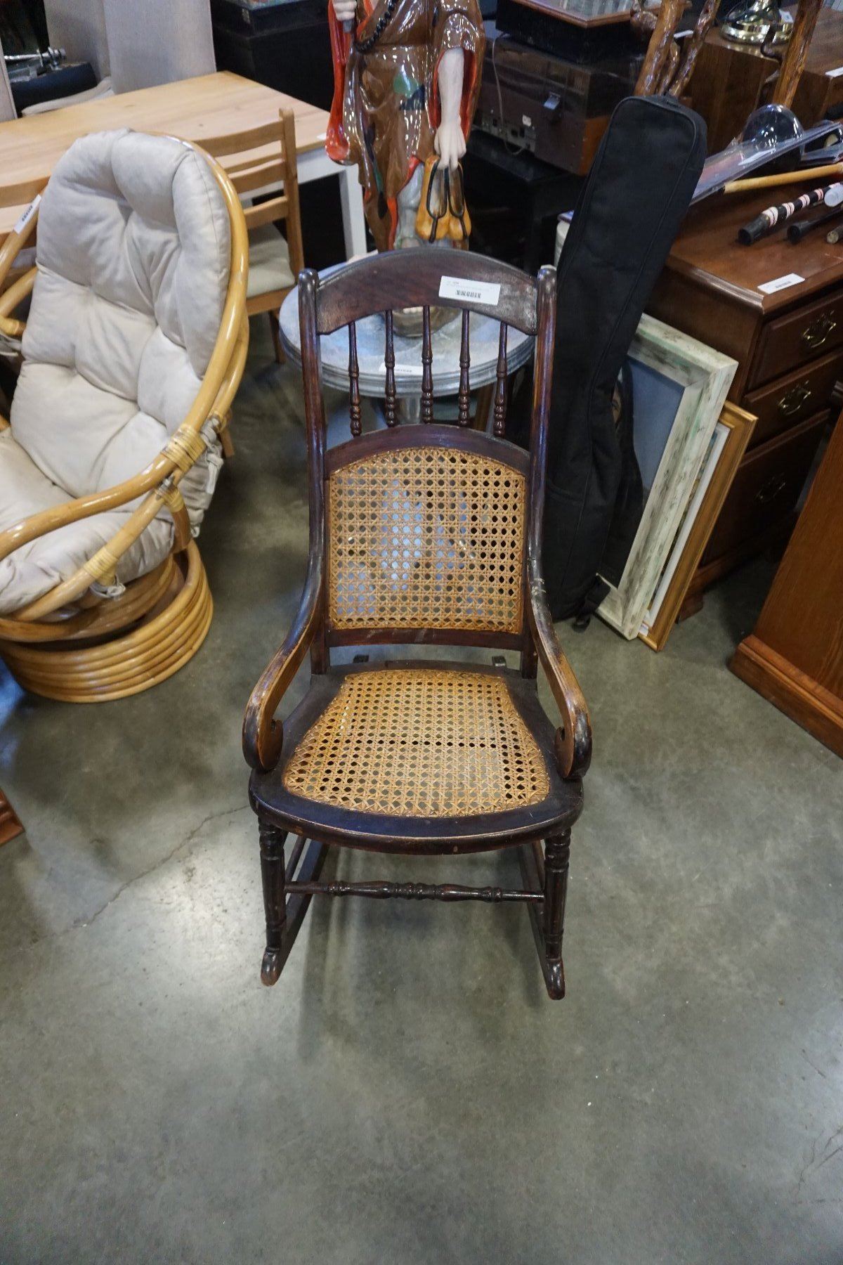 ANTIQUE WICKER BACK ROCKING CHAIR