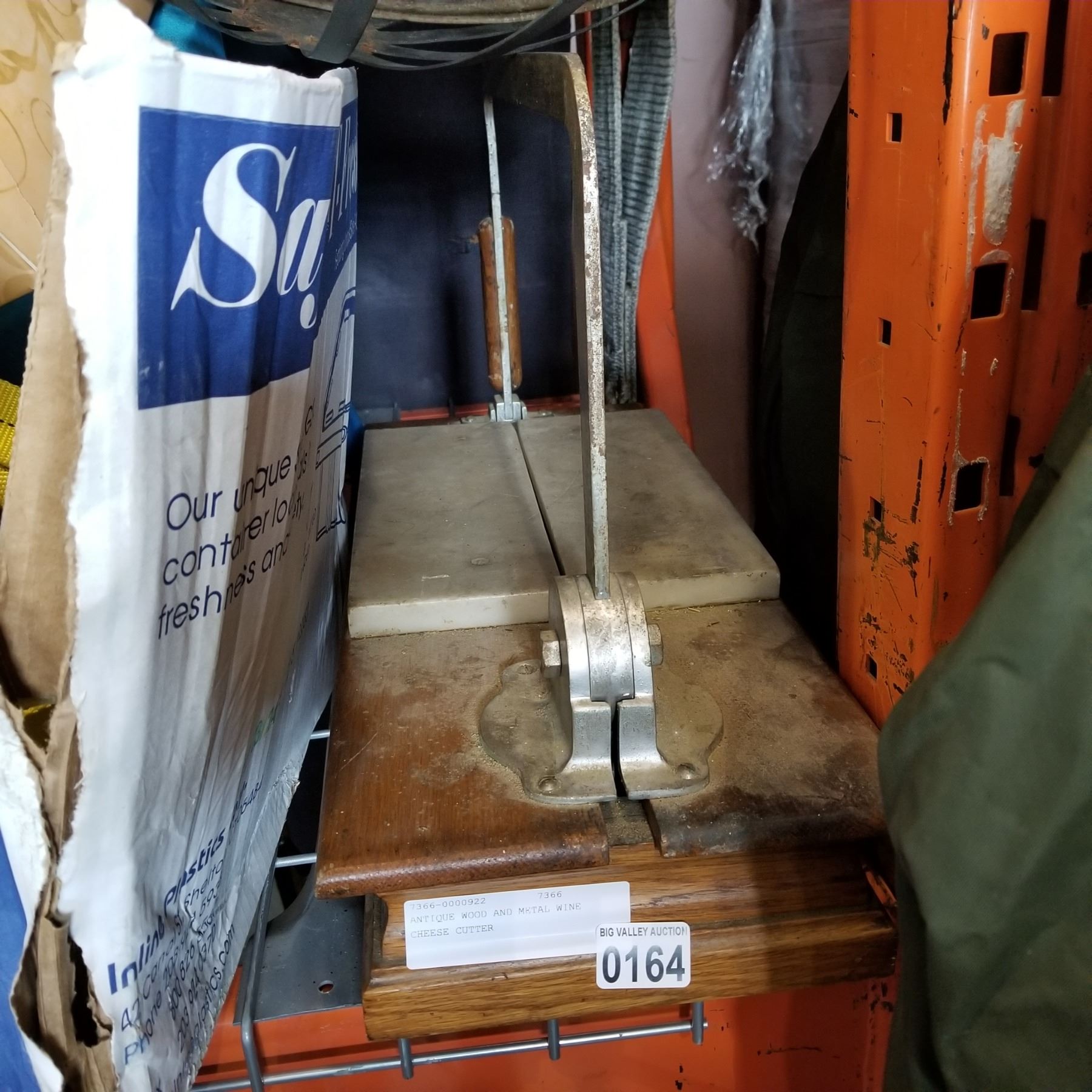 ANTIQUE WOOD AND METAL WINE CHEESE CUTTER