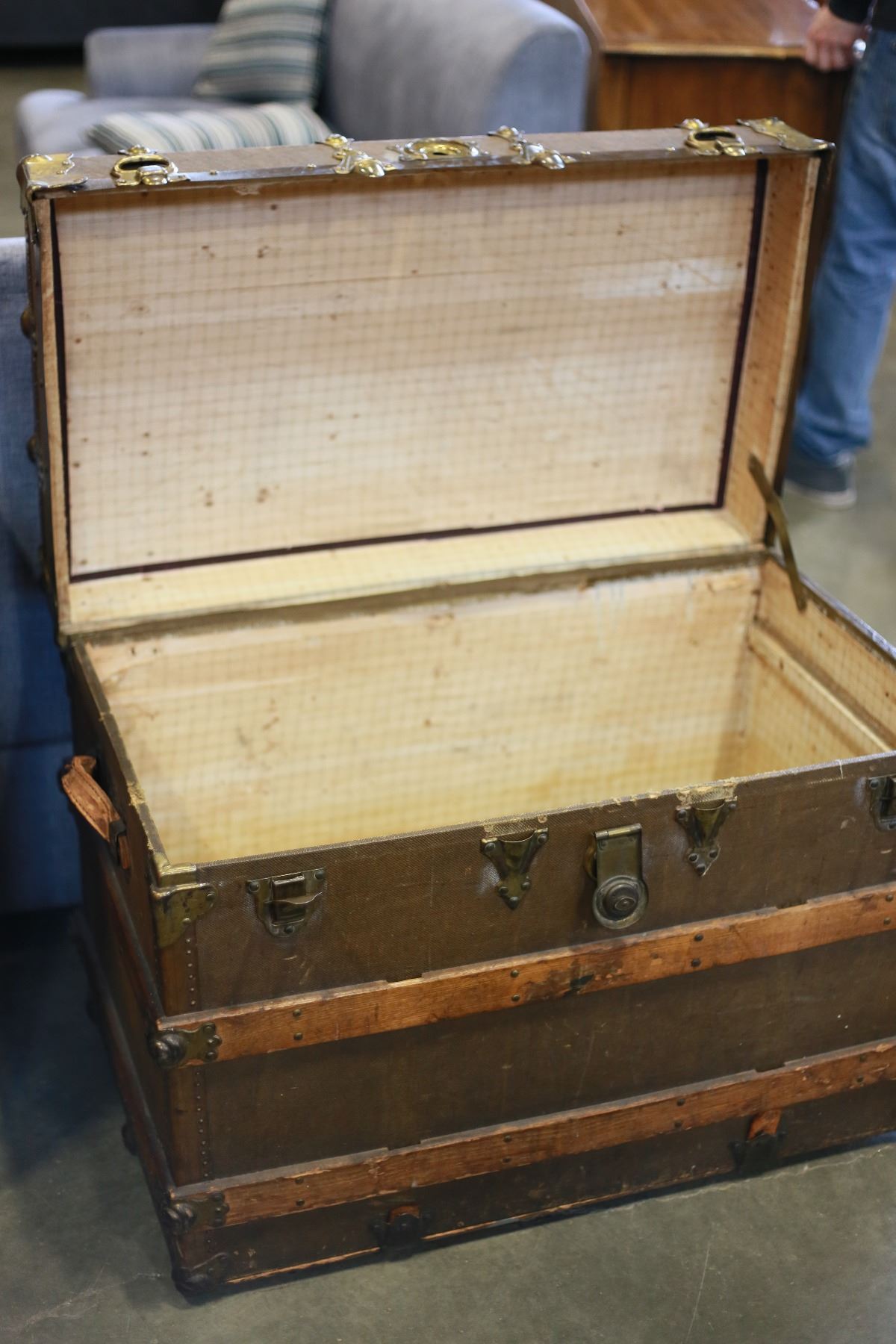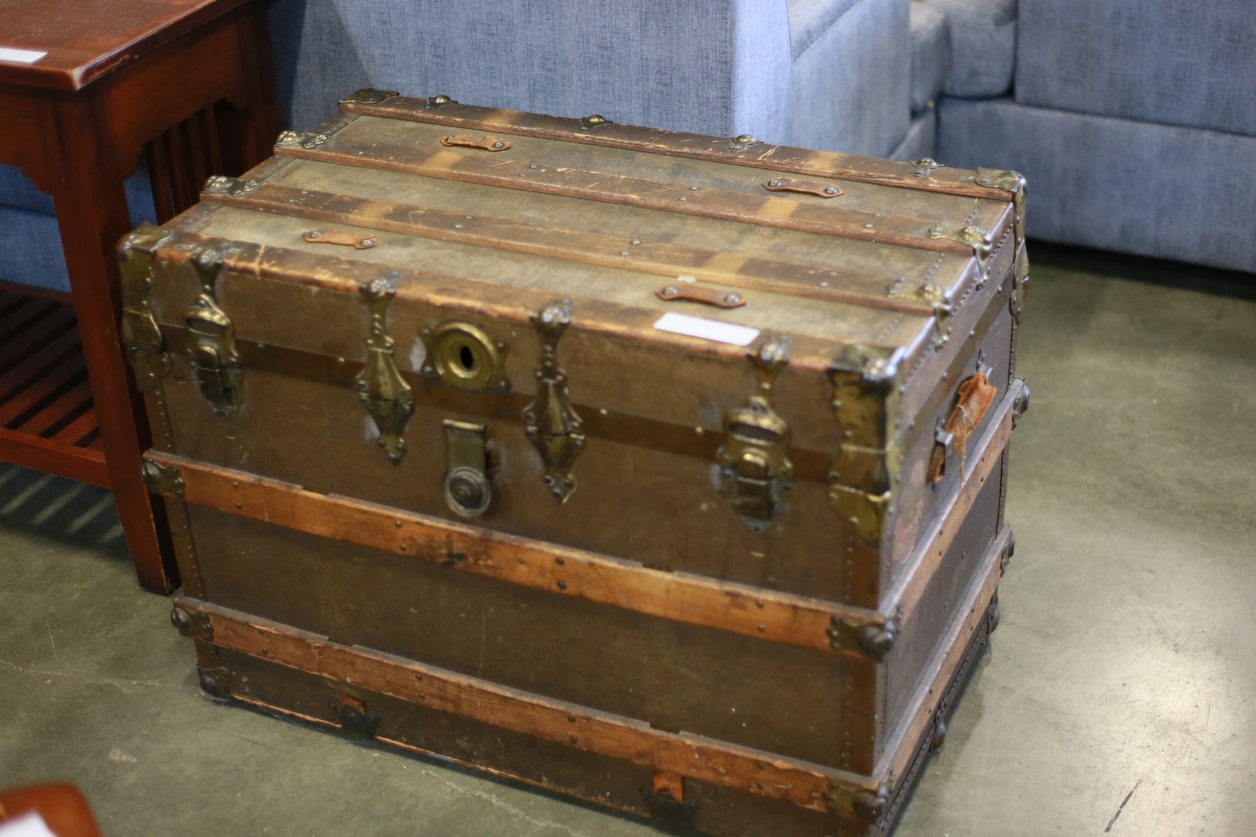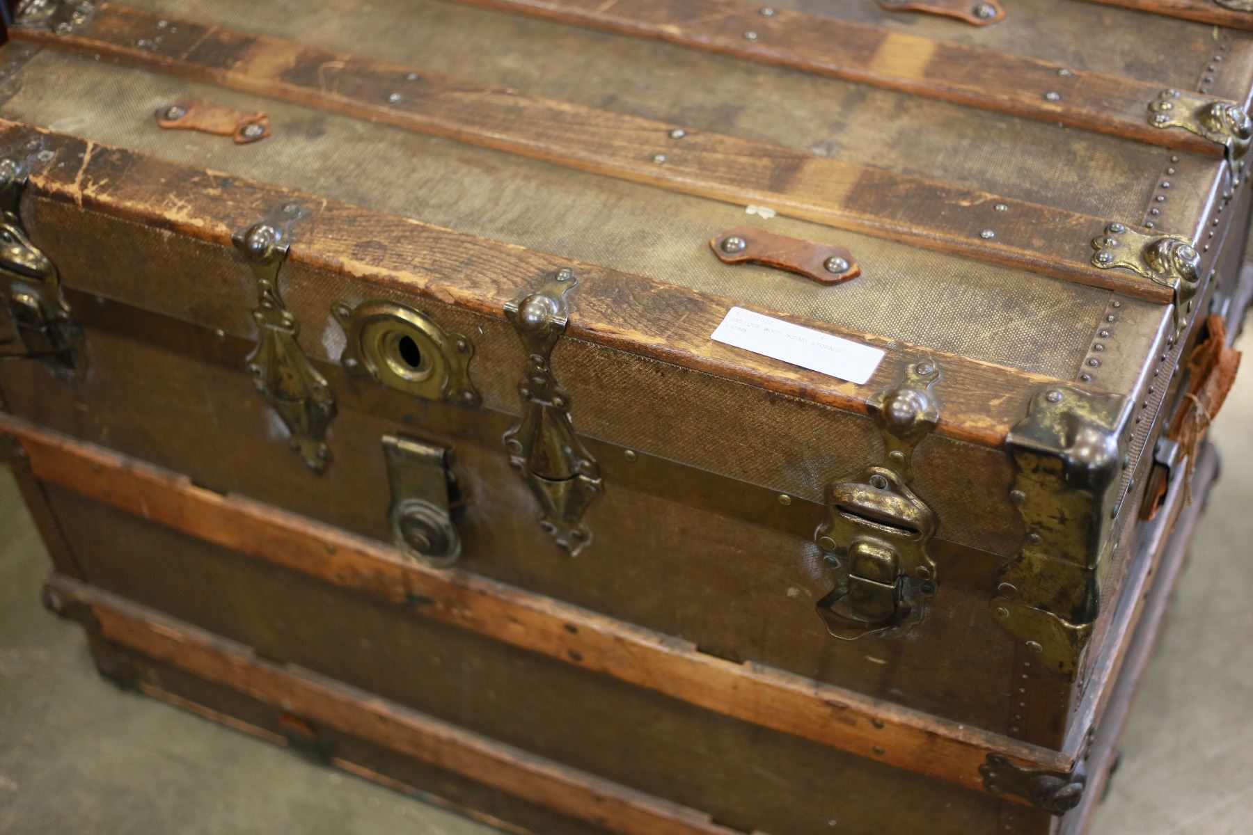 ANTIQUE WOOD BOUND STORAGE TRUNK