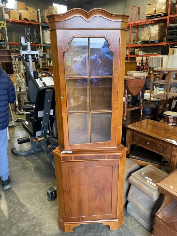 ANTIQUE YEW WOOD CORNER CABINET, IN GOOD ORIGINAL CONDITION, 74 INCH TALL