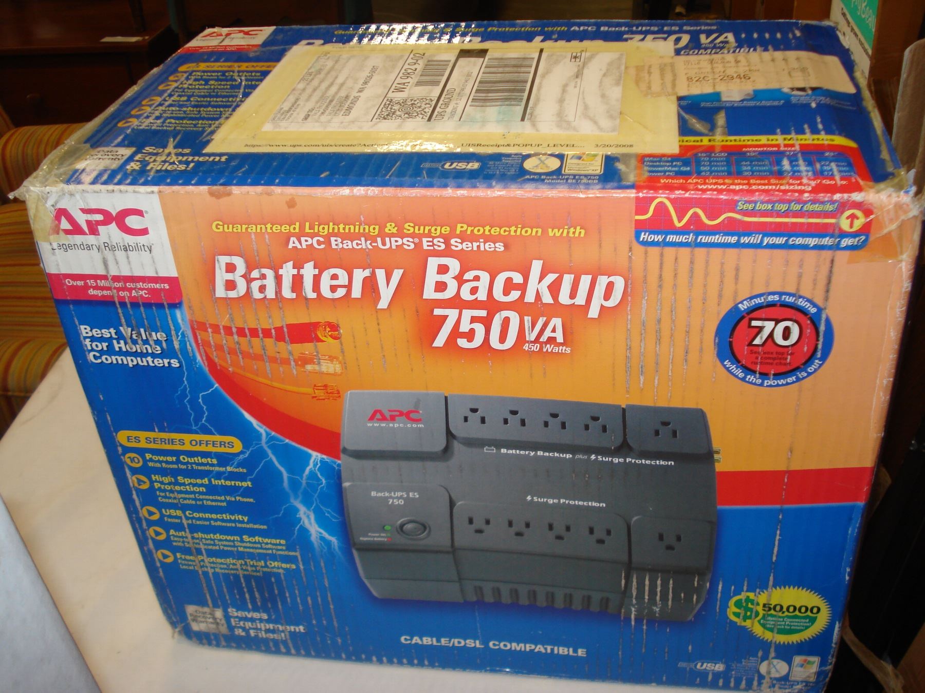 APC BATTERY BACK UP AND BOX OF ESTATE GOODS