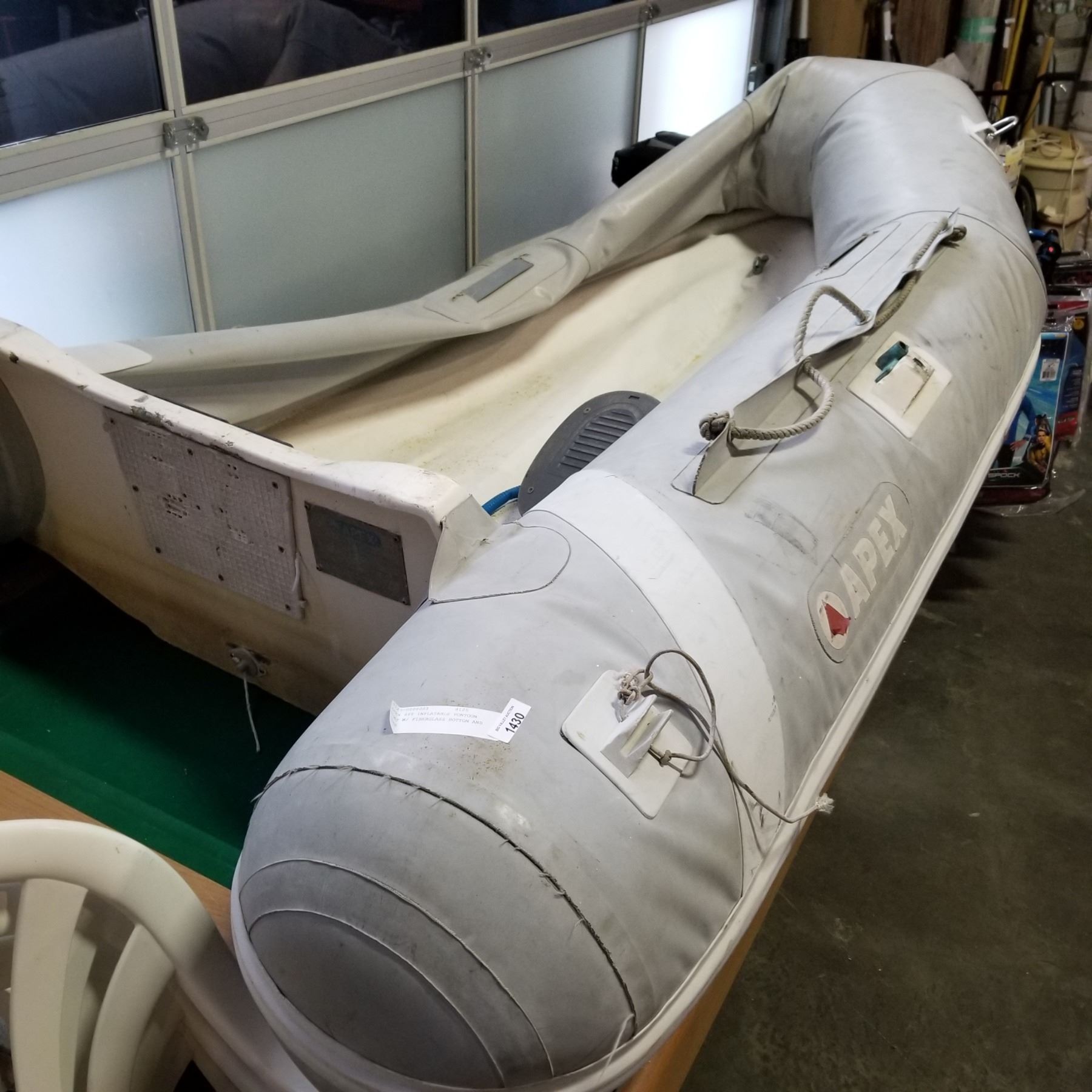 APEX 8FT INFLATABLE PONTOON BOAT W/ FIBERGLASS BOTTON AND OARS