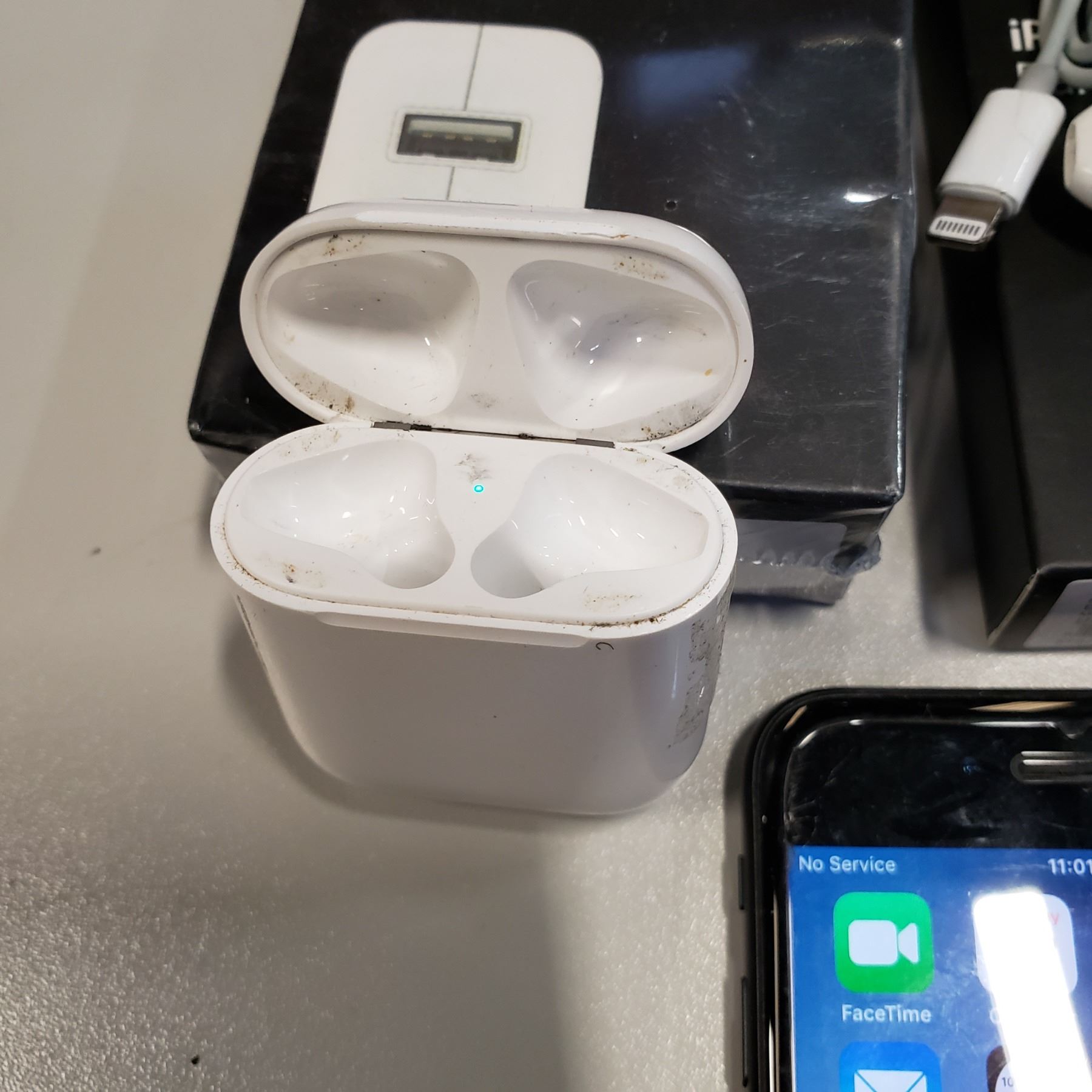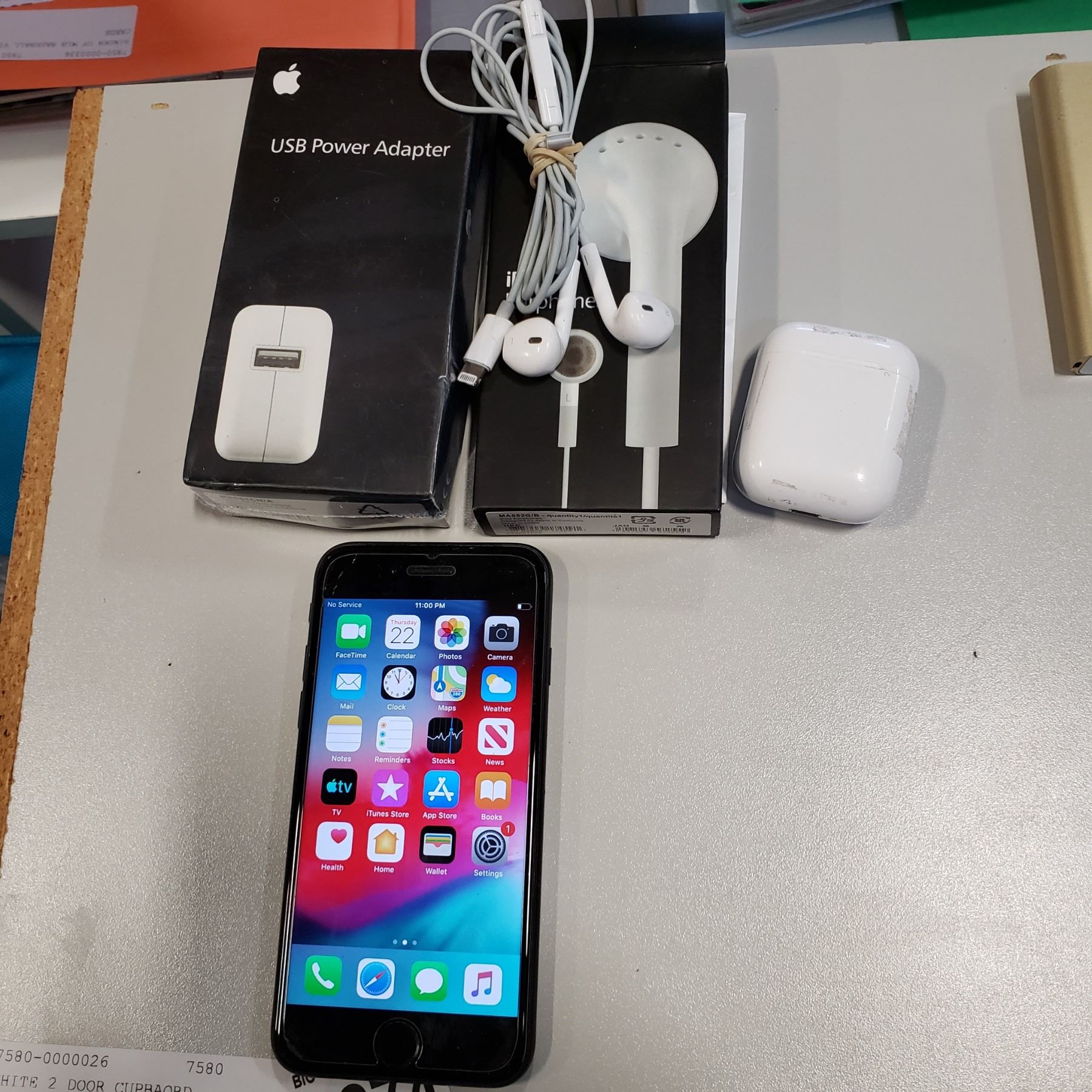 APPLE IPHONE 7 32GB IOS 12.3.1 NETWORK UNLOCKED WITH HEADPHONES, DATA CABLE, WALL CHARGER AND AIRPOD CHARGE CASE