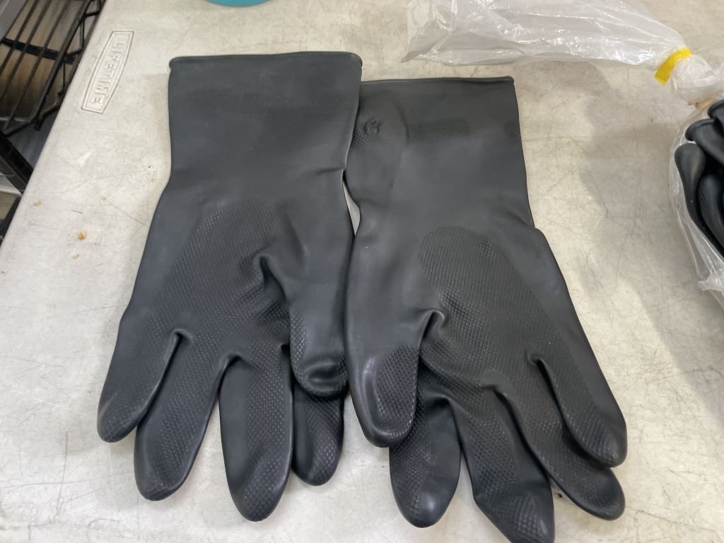 APPROX 10 PAIR RUBBER GLOVES SIZE 9.5 AND NEW LOCKOUT TOOL