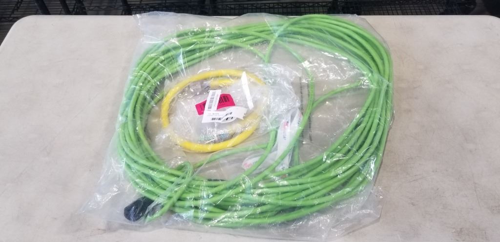 APPROX 100 FEET GREEN AWG 16 EXTENSION CORD AND APPROX 2 FEET YELLOW EXTENSION CORD 10 AWG