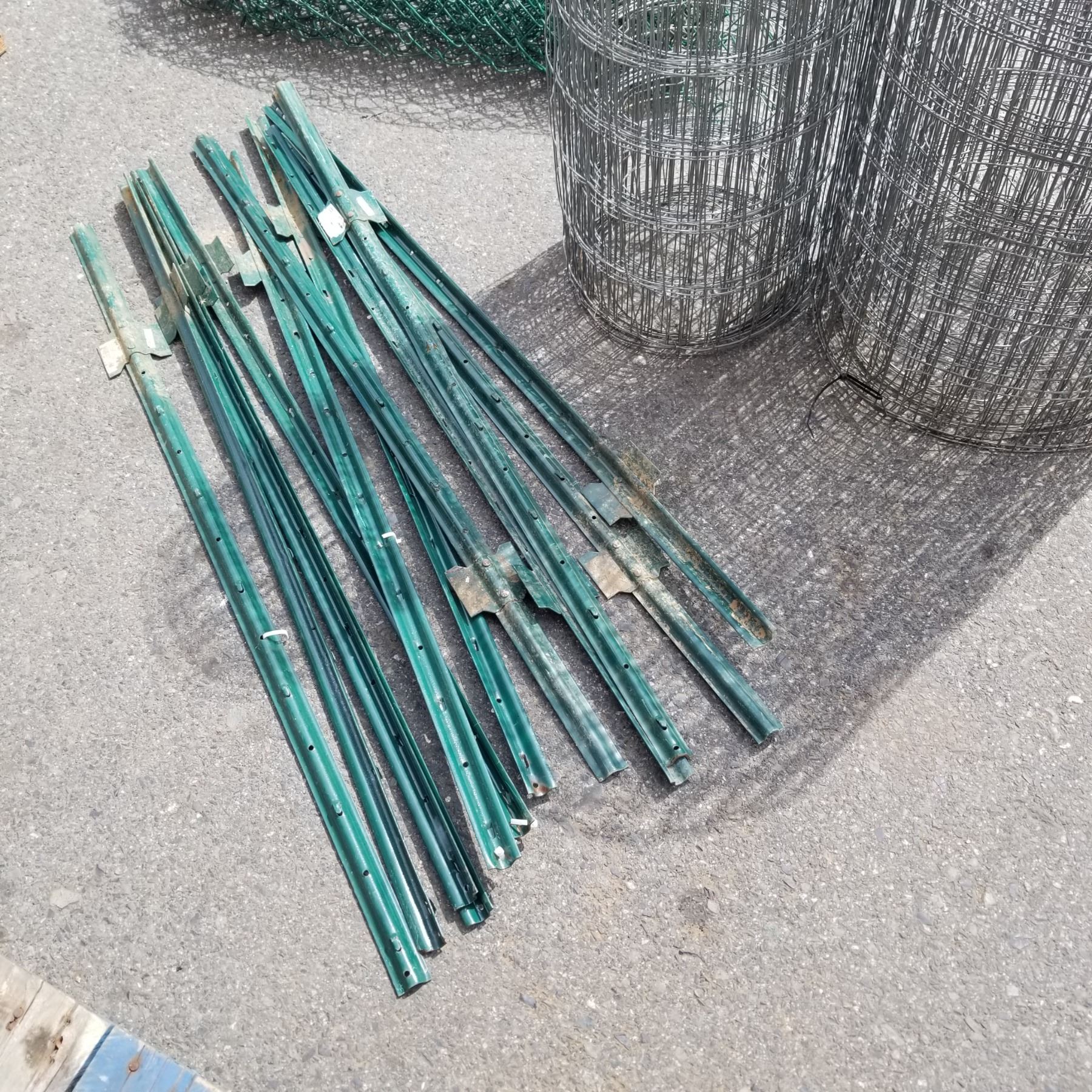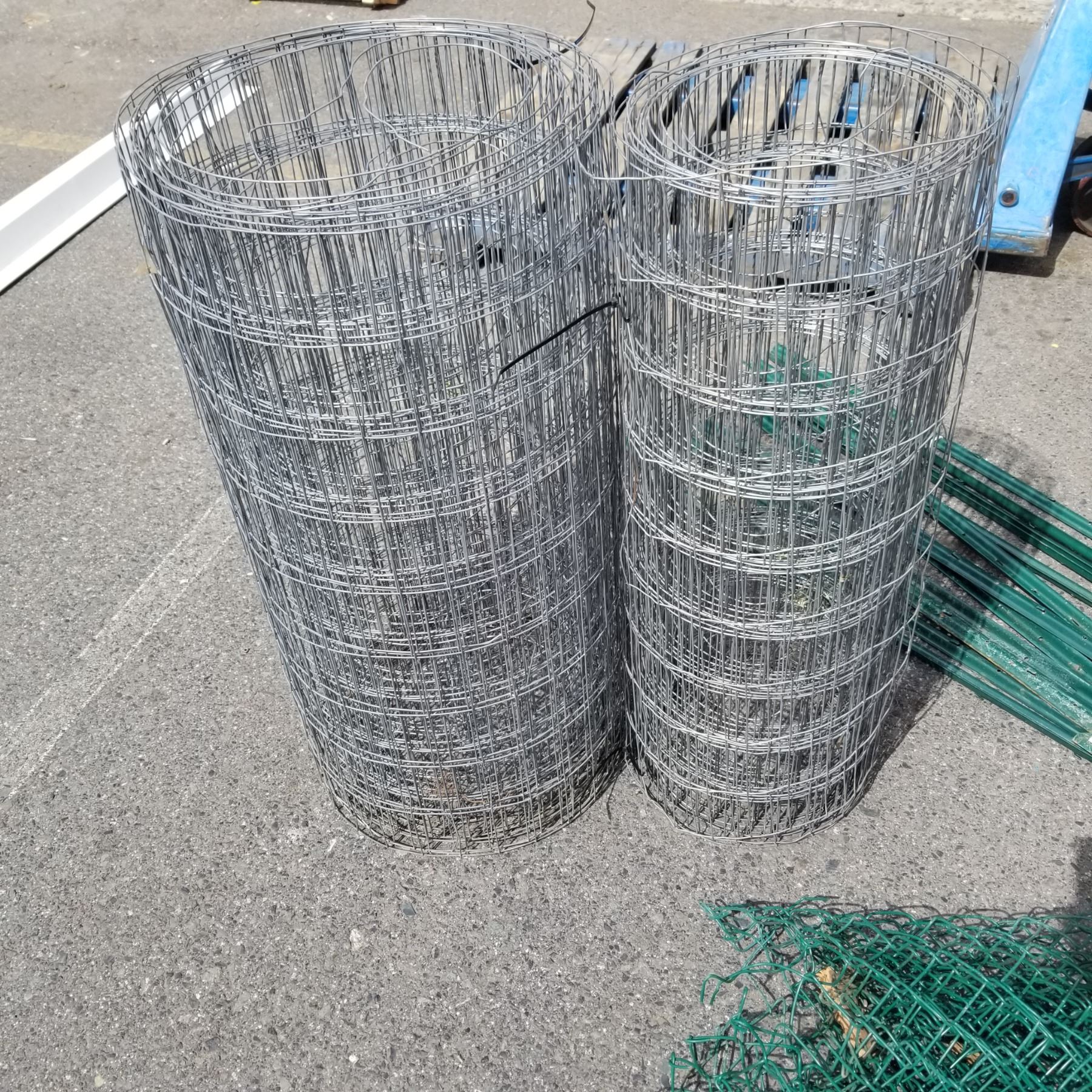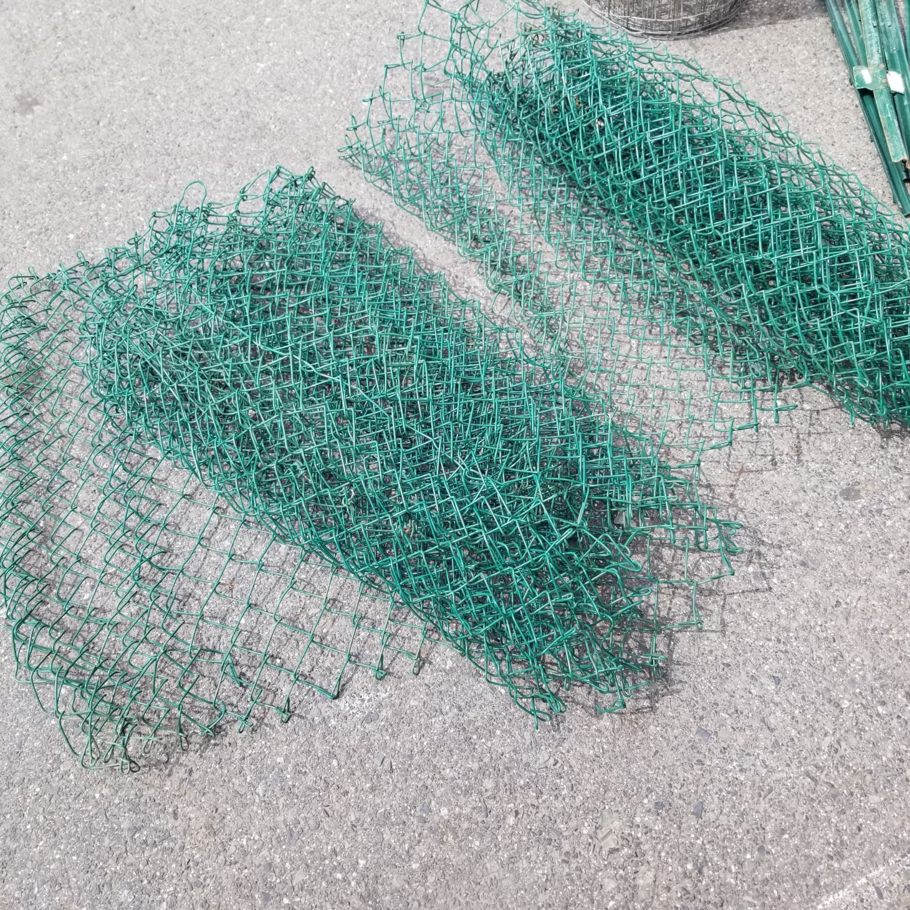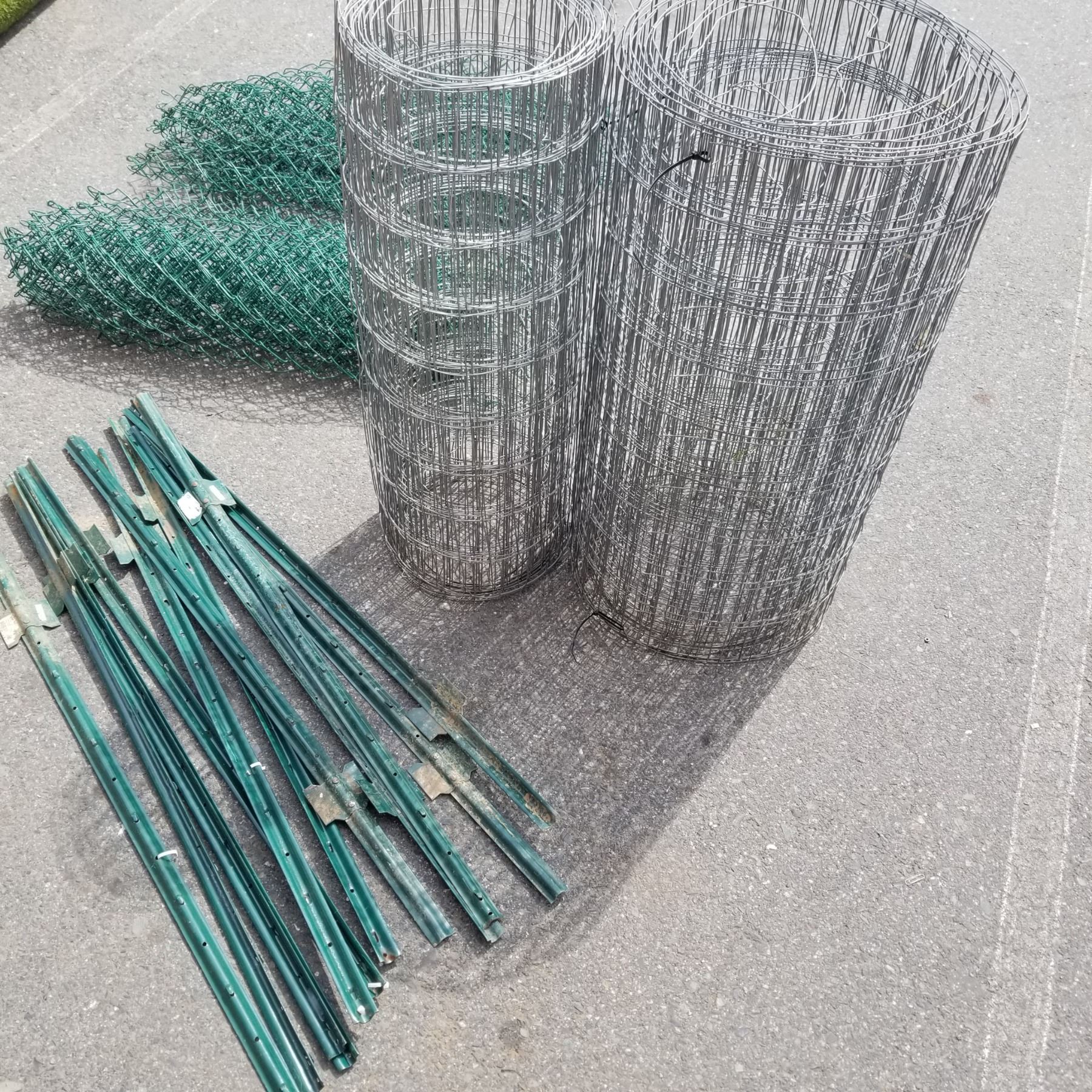 APPROX. 100 FT OF WIRE FENCING, GREEN CHAINLINK, AND 12, 4 FT U-POSTS