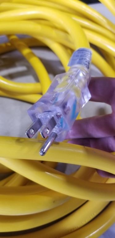 APPROX 25 FEET YELLOW EXTENSION CORD 3X10 AWG