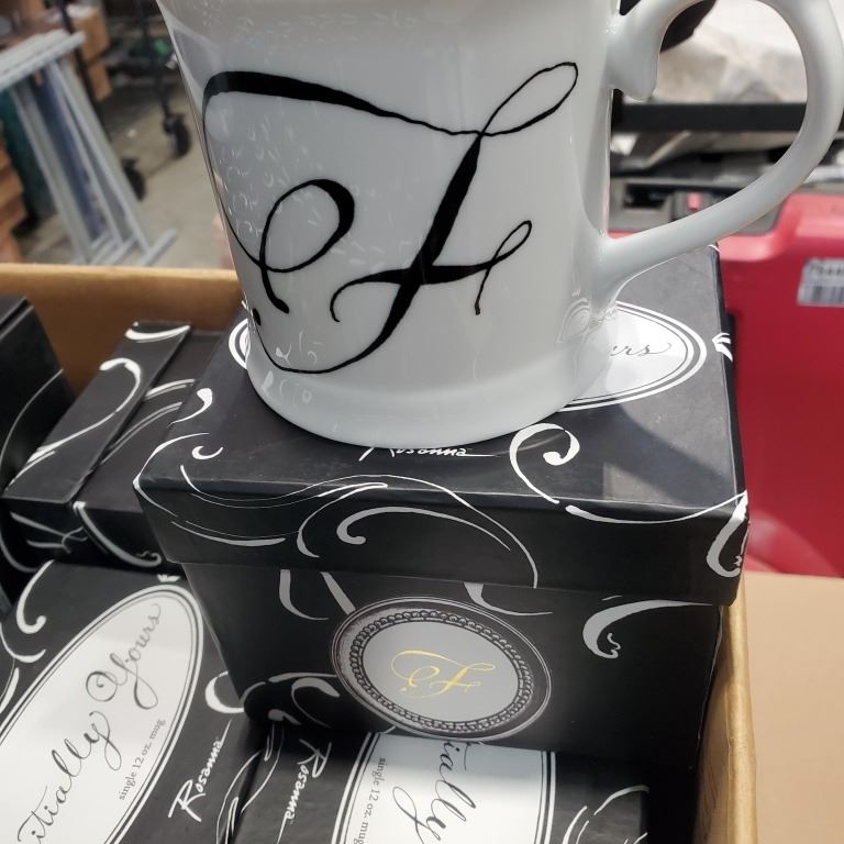 APPROX 45PC TOTAL NEW INTIAL PLATES AND MUGS