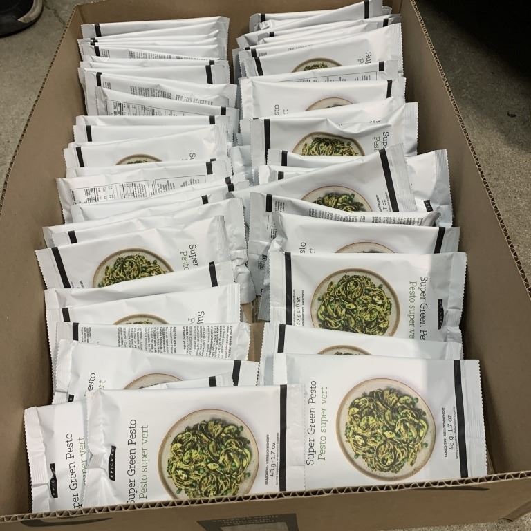 APPROX 70 PACKETS OF SEALED SUPER GREEN PESTO MIX 48 G BAGS