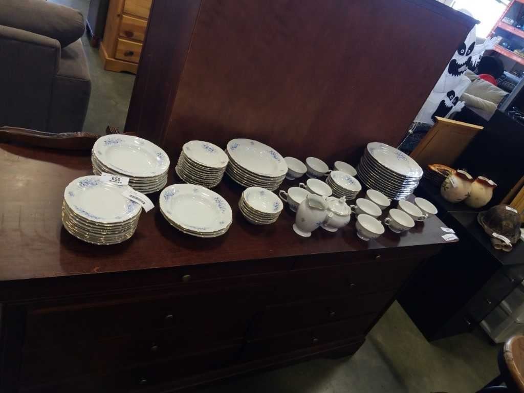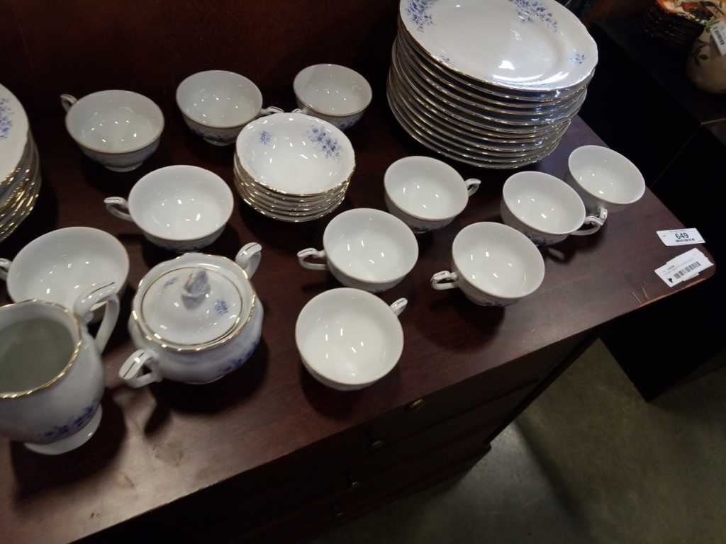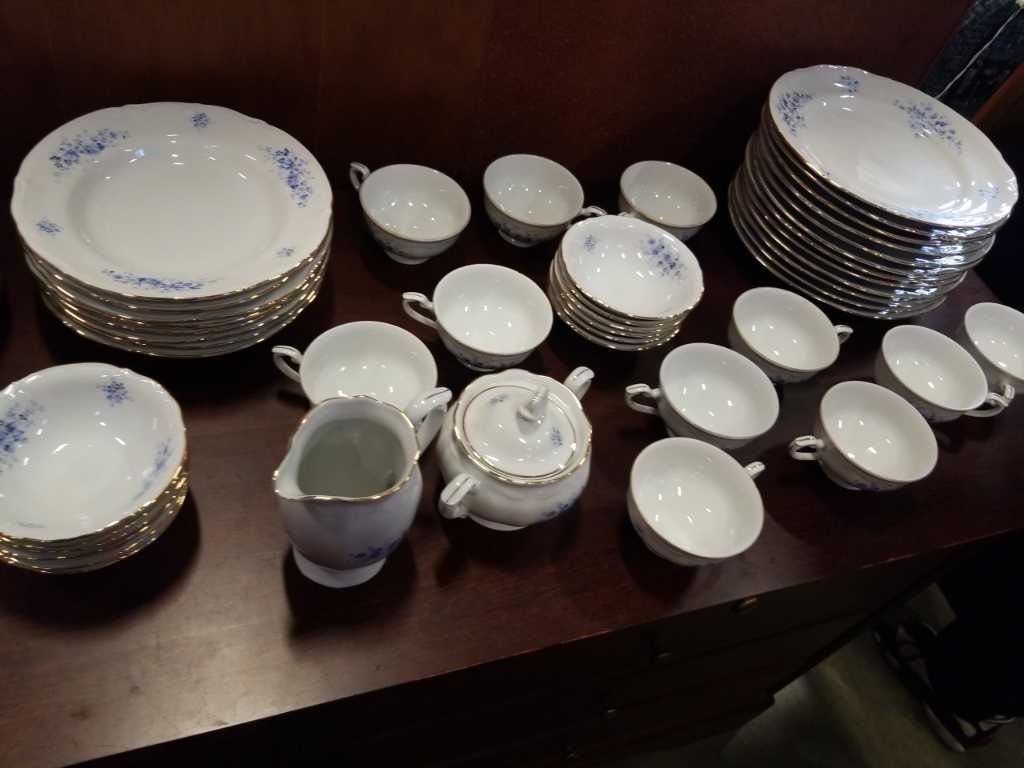 APPROX 77 PIECES CHODZEIZ MADE IN POLAND CHINE - CUPS AND SACUERS, PLATES, CREAM AND SUGAR, ETC