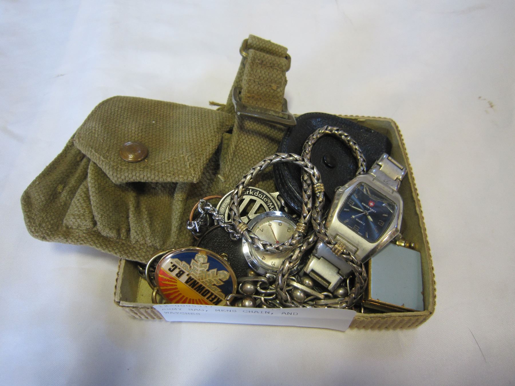 ARMY BAG, MENS CHAIN, AND WATCHES