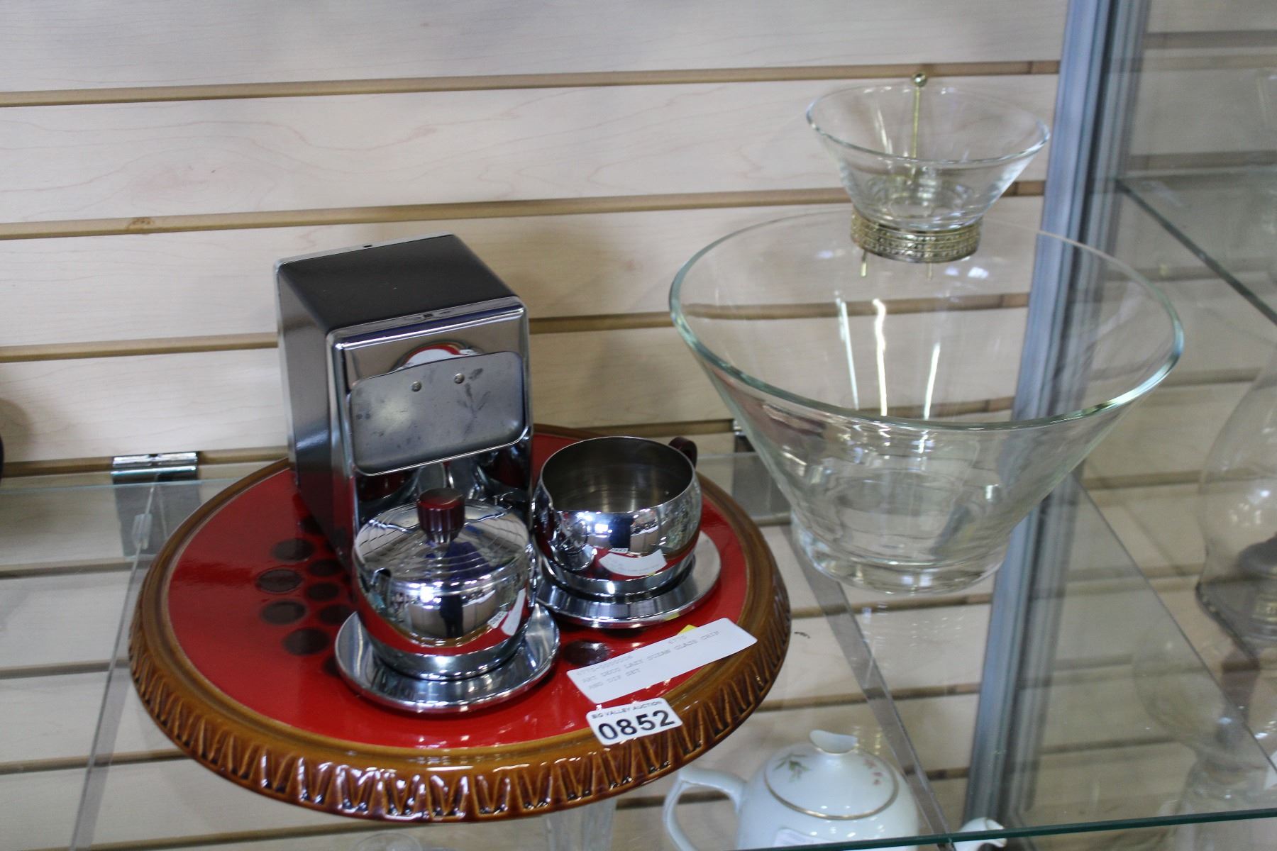 ART DECO LAZY SUZAN GLASS CHIP AND DIP SET