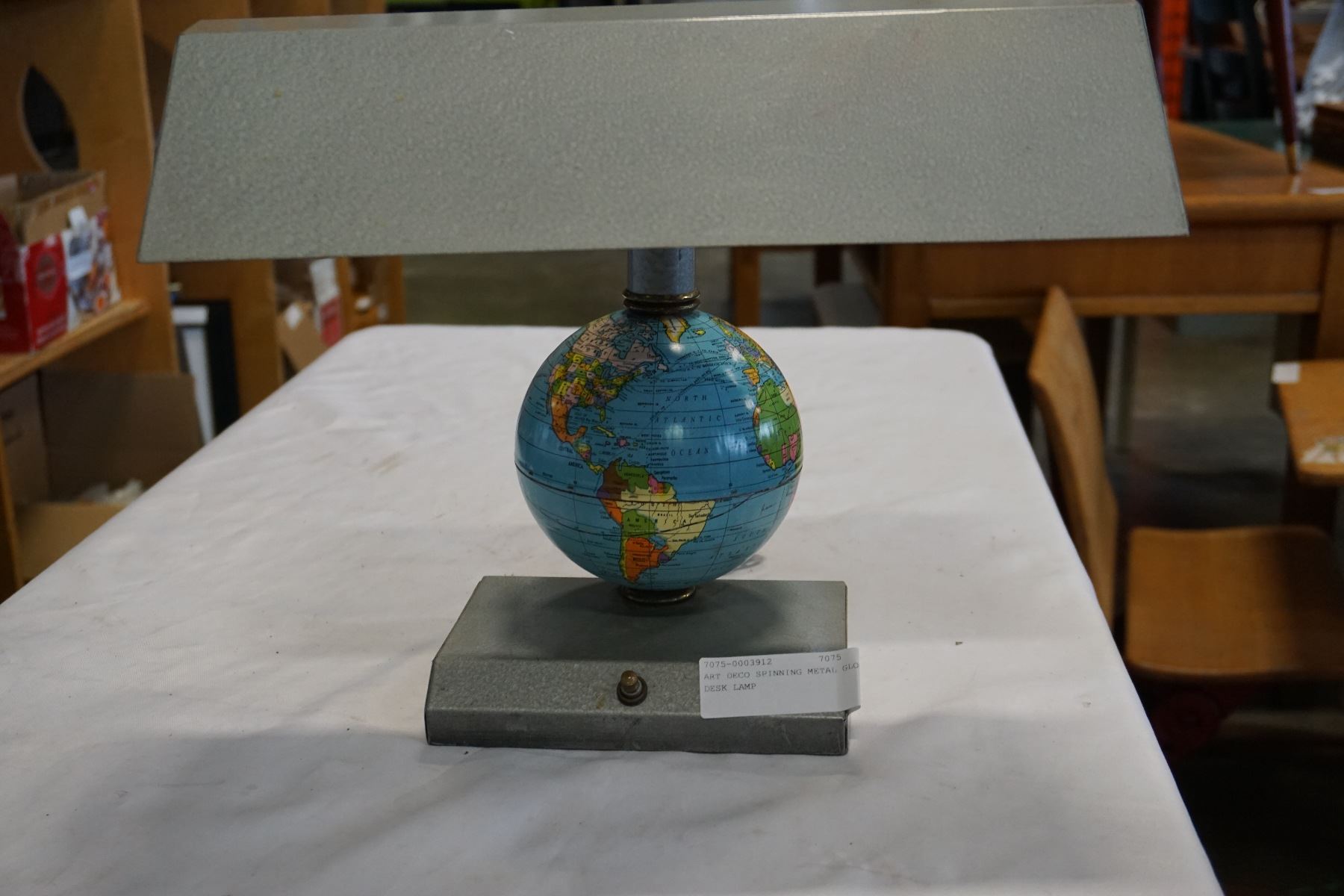 ART DECO SPINNING METAL GLOBE DESK LAMP
