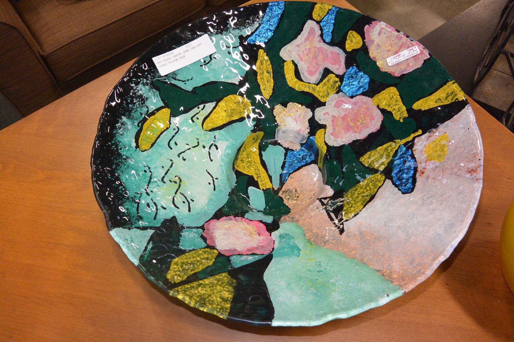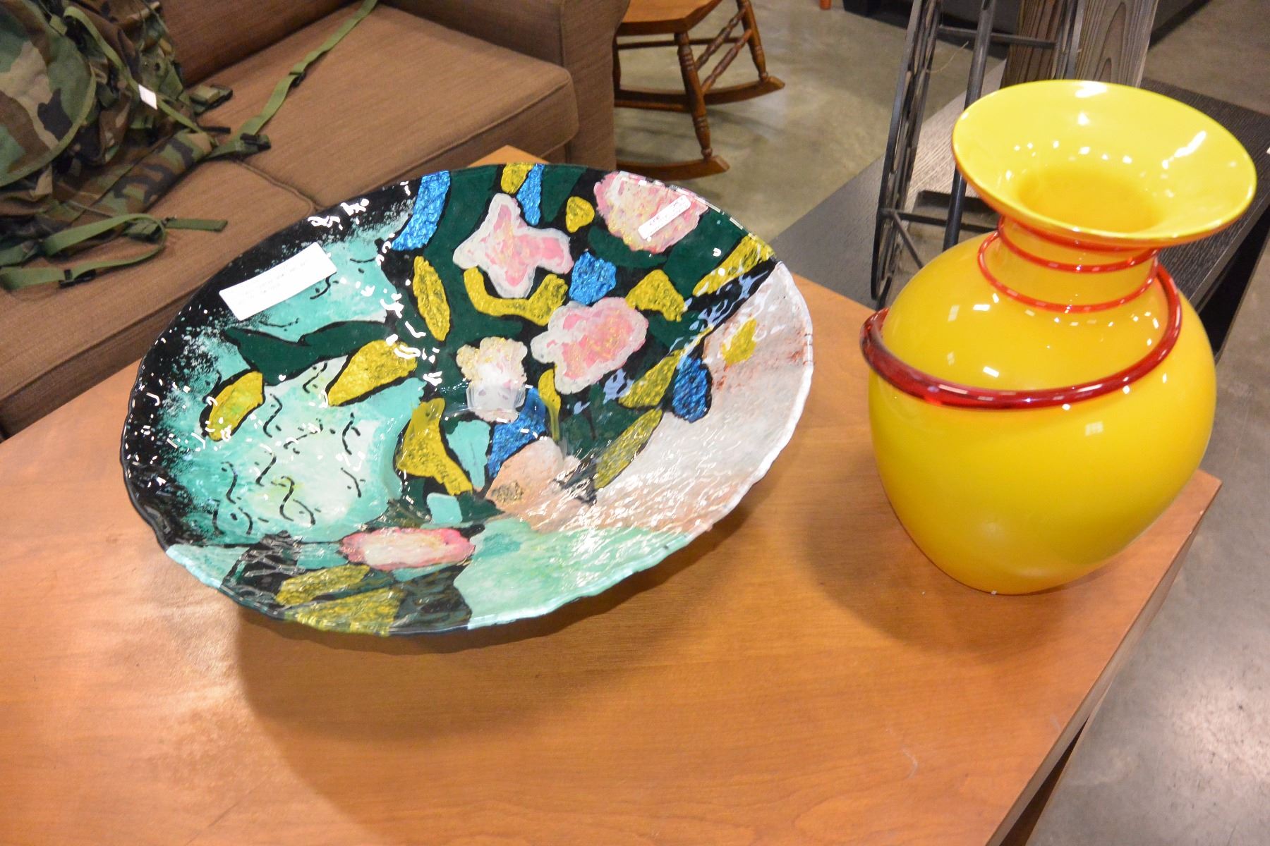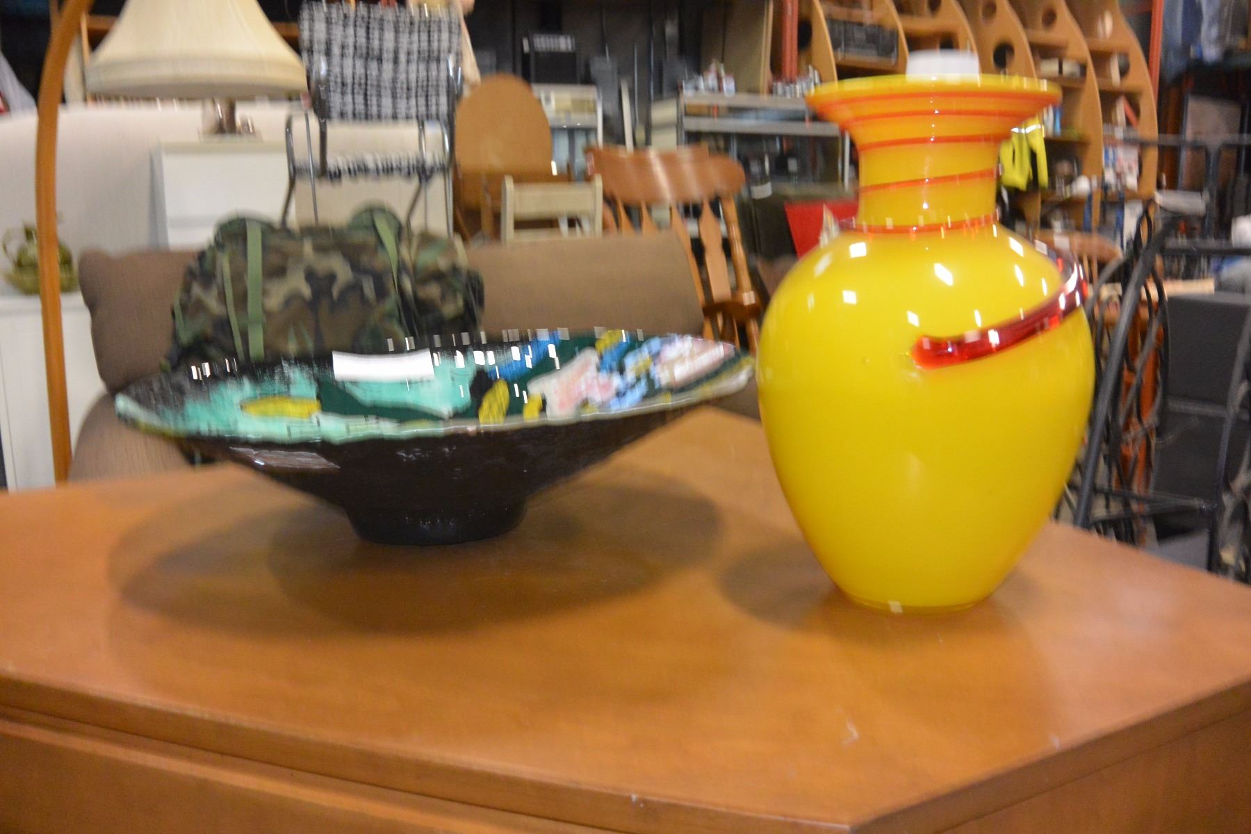 ART GLASS CENTRE BOWL AND ART GLASS YELLOW VASE