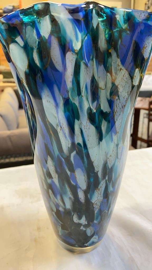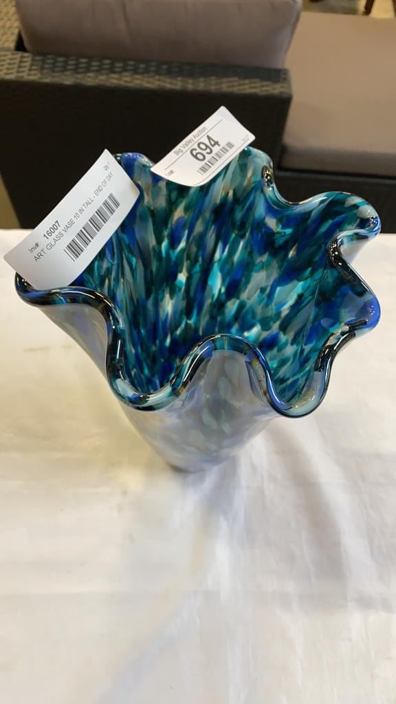 ART GLASS VASE 10 IN TALL - END OF DAY STYLE