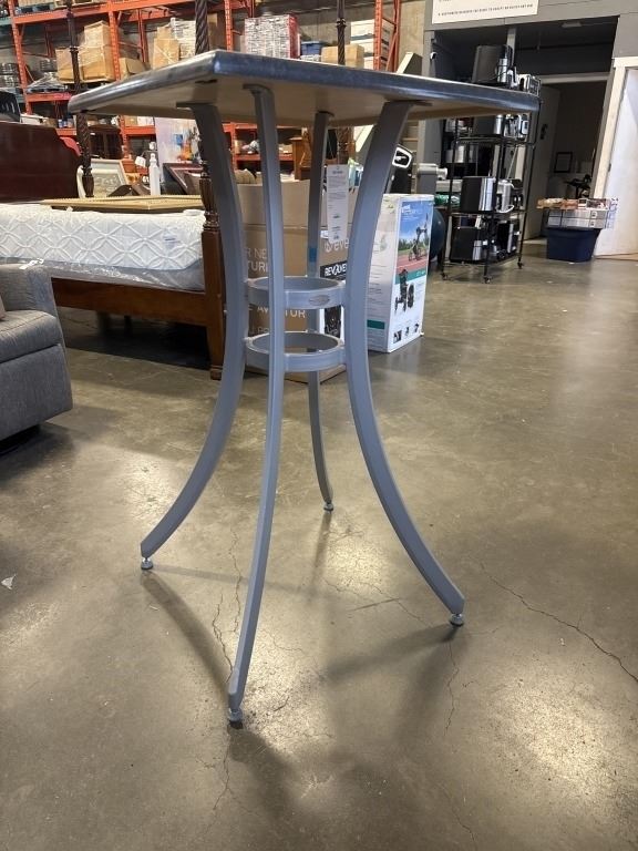AS NE RATANA 'SEATTLE' BAR HEIGHT PATIO TABLE, 24 X 24 INCH TOP AND 42 INCH TALL, ALUMINUM FRAME