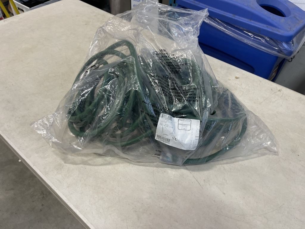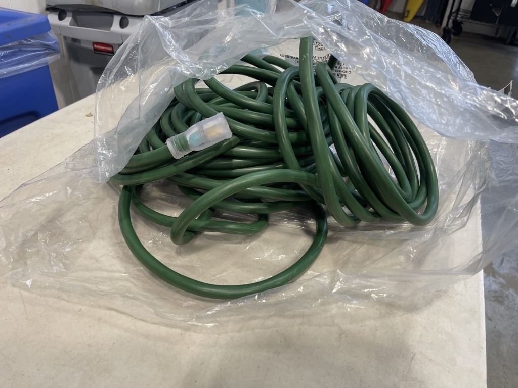 AS NEW 100FT GREEN 3 WIRE INDOOR OUTDOOR LIGHTED EXTENSION CORD, 10AWG