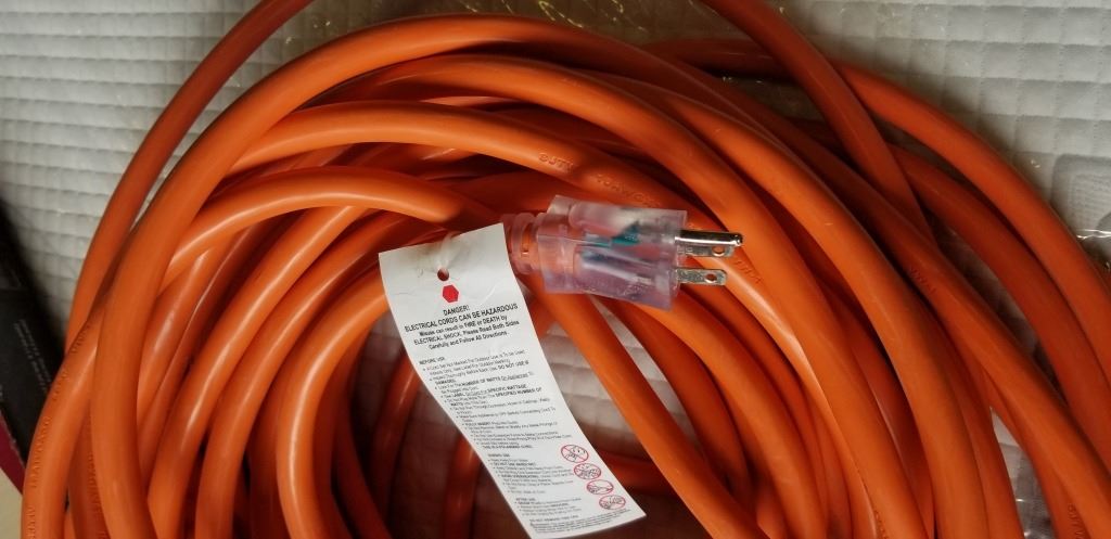 AS NEW 100FT INDOOR OUTDOOR HEAVY DUTY LIGHTED 3 WIRE GROUNDED EXTENSION CORD,ORANGE, 10AWG