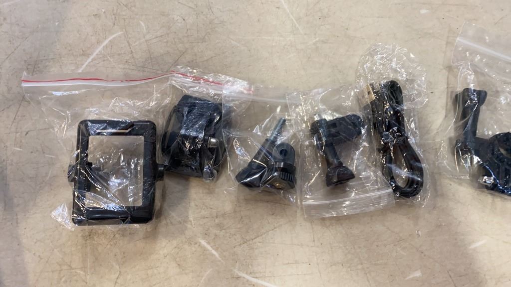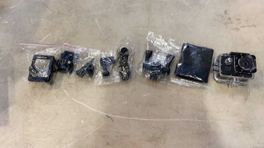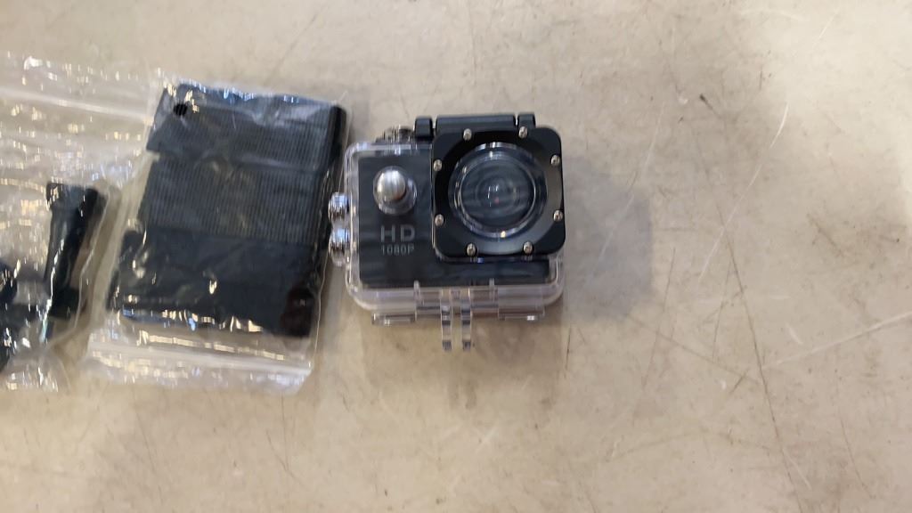 AS NEW 1080P SPORTS ACTION CAMERA WITH ACCESSORIES
