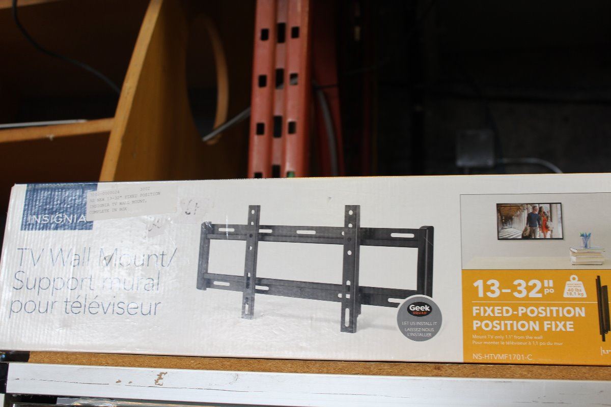 AS NEW 13-32" FIXED POSITION INSIGNIA TV WALL MOUNT, COMPLETE IN BOX