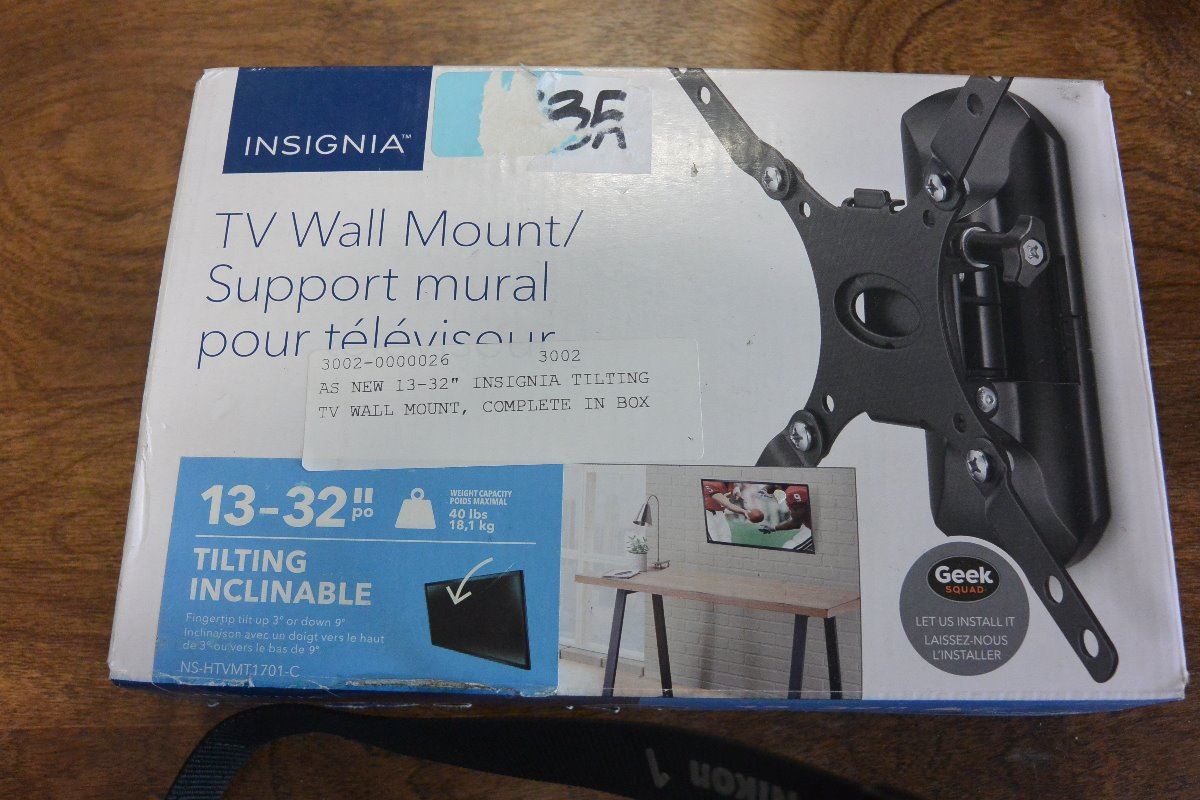 AS NEW 13-32" INSIGNIA TILTING TV WALL MOUNT, COMPLETE IN BOX