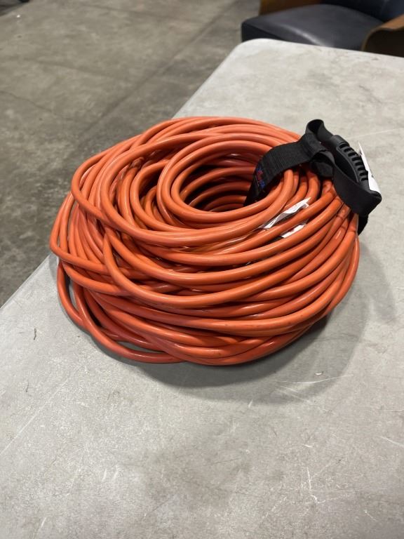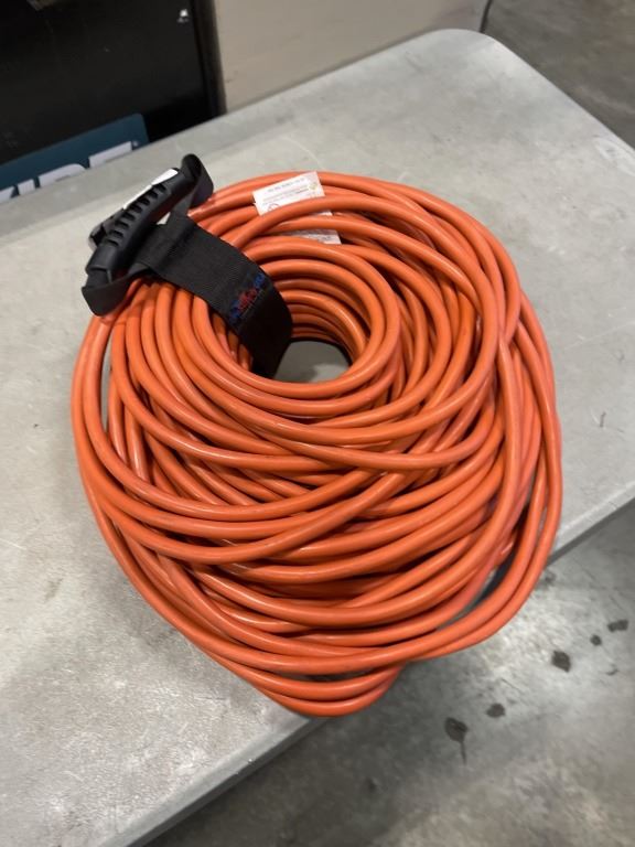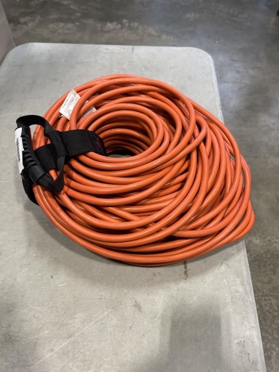 AS NEW 200FT HEAVY DUTY INDOOR OUTDOOR 3 WIRE EXTENSION CORD, ORANGE 12AWG