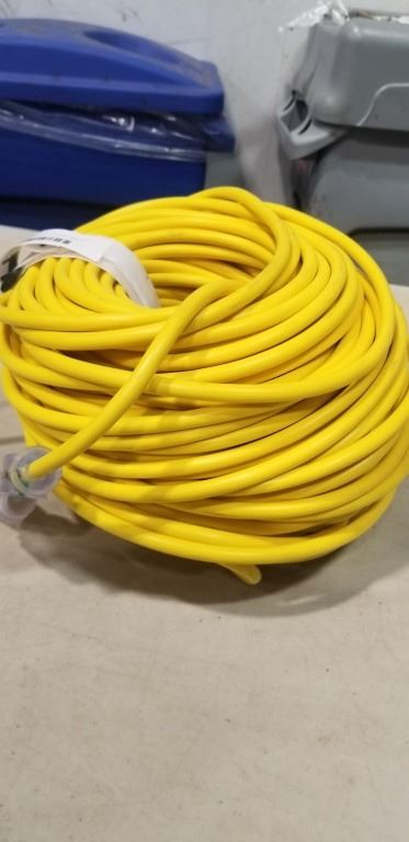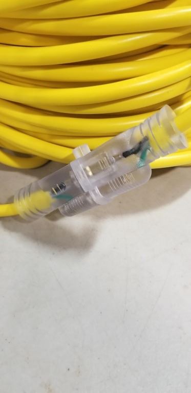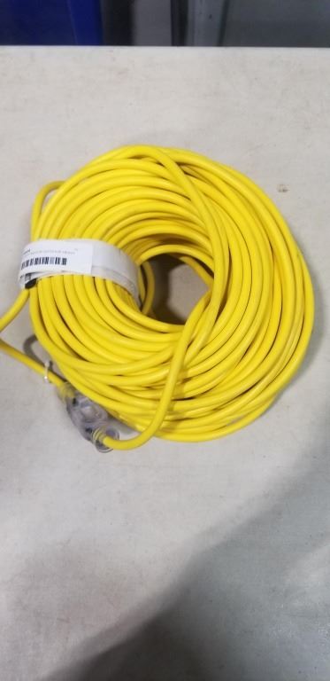 AS NEW 200FT INDOOR OUTDOOR HEAVY DUTY LIGHTED 3 WIRE EXTENSION CORD, 16 AWG, YELLOW
