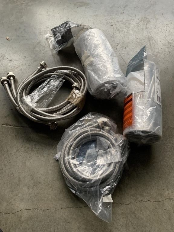 AS NEW 4 SMART CHOICE UNIVERSAL 6 FT. WASHER HOSES - AND 2 UNIVERSAL 8" HYBRID DRYER VENTS TOTAL 4 HOSES AND 2 VENT TUBES RETAIL $200