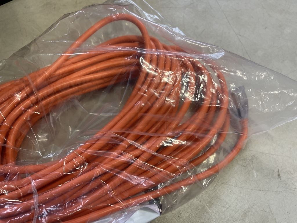 AS NEW 50FT ORANGE INDOOR OUTDOOR HEAVY DUTY LIGHTED 3 WIRE GROUNDED EXTENSION CORD 16AWG