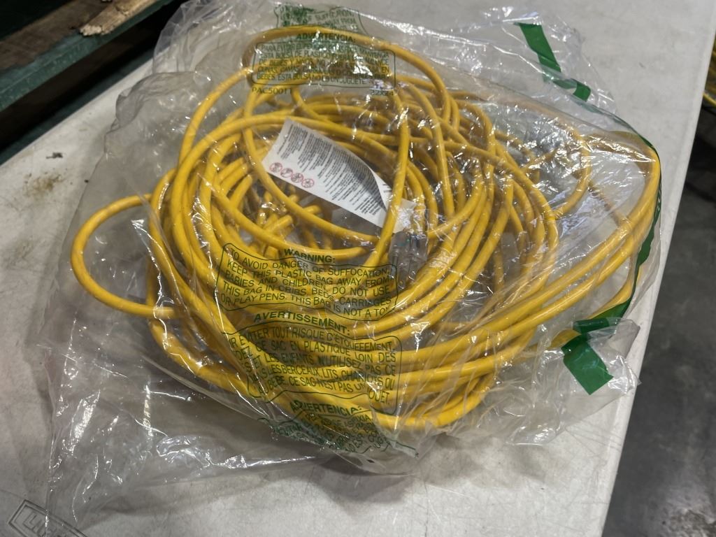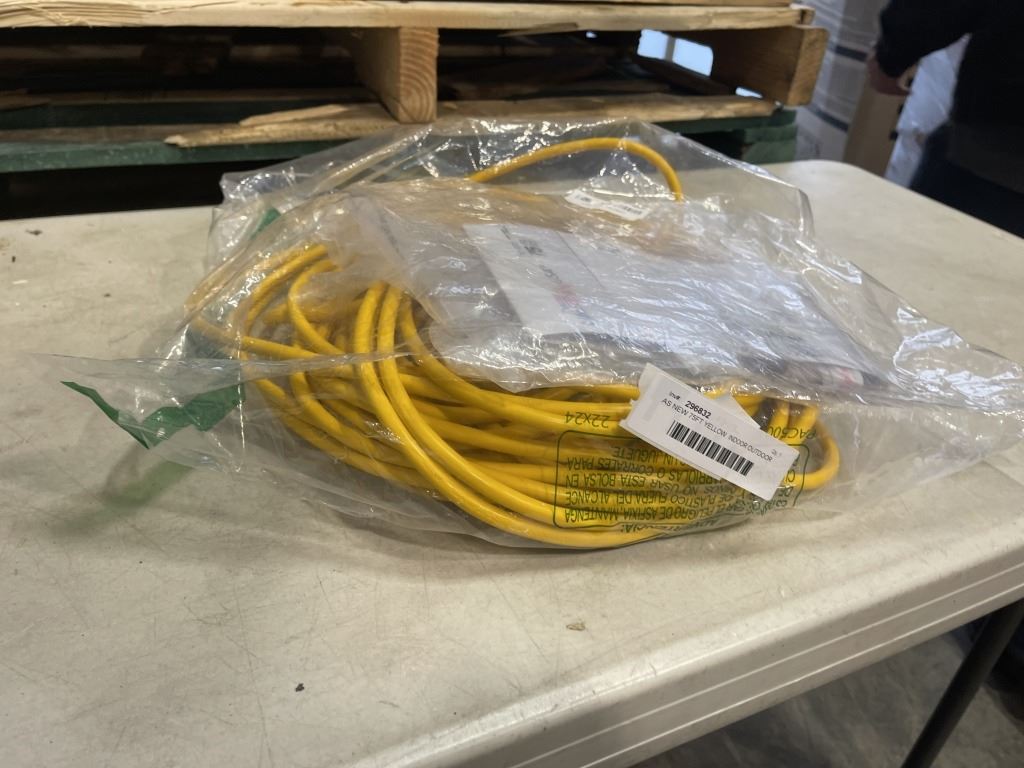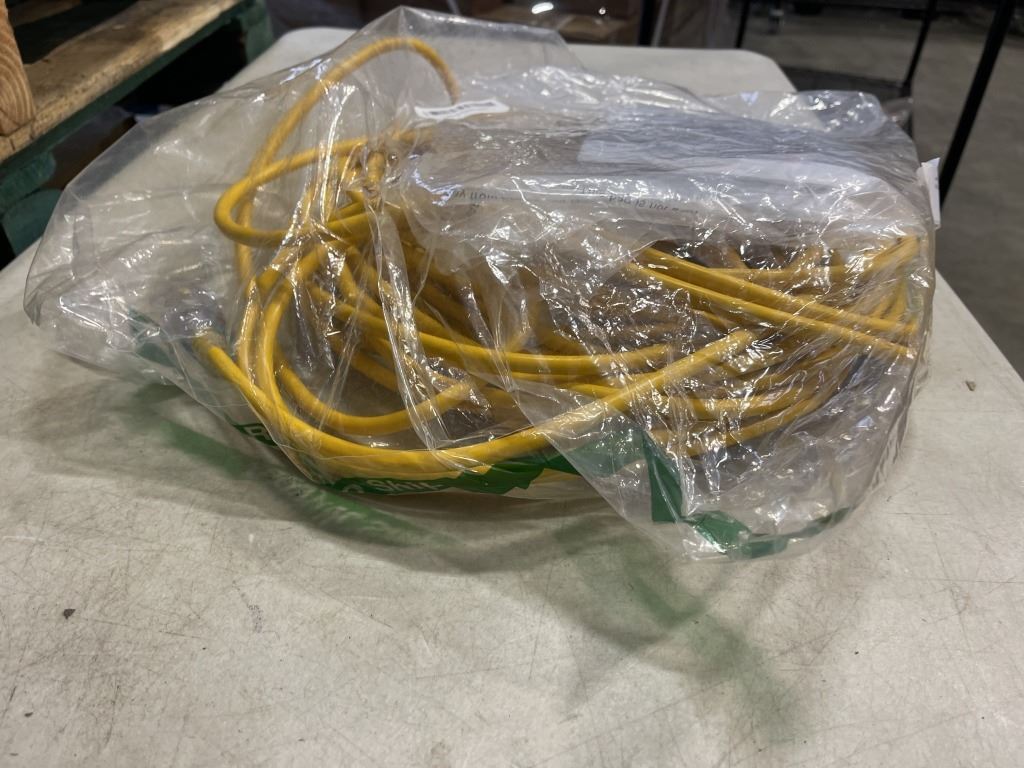 AS NEW 75FT YELLOW INDOOR OUTDOOR HEAVY DUTY LIGHTED 3 WIRE GROUNDED EXTENSION CORD 16AWG