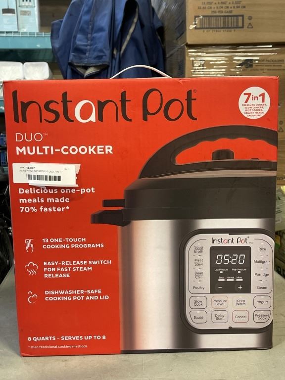 AS NEW 8QT INSTANT POT DUO 7 IN 1 MULTI COOKER WITH 13 ONE TOUCH COOKING PROGRAMS TESTED WORKING