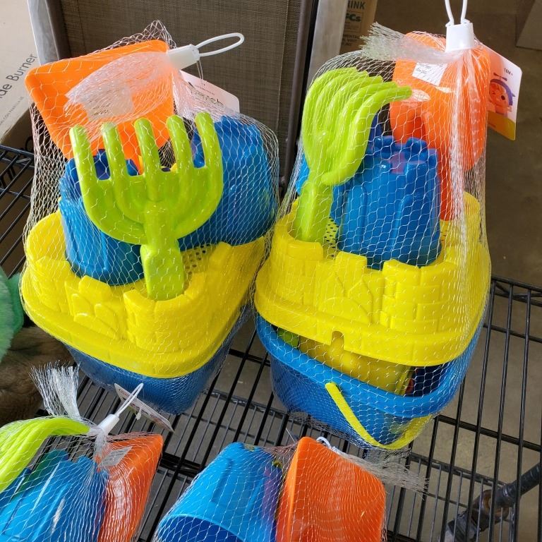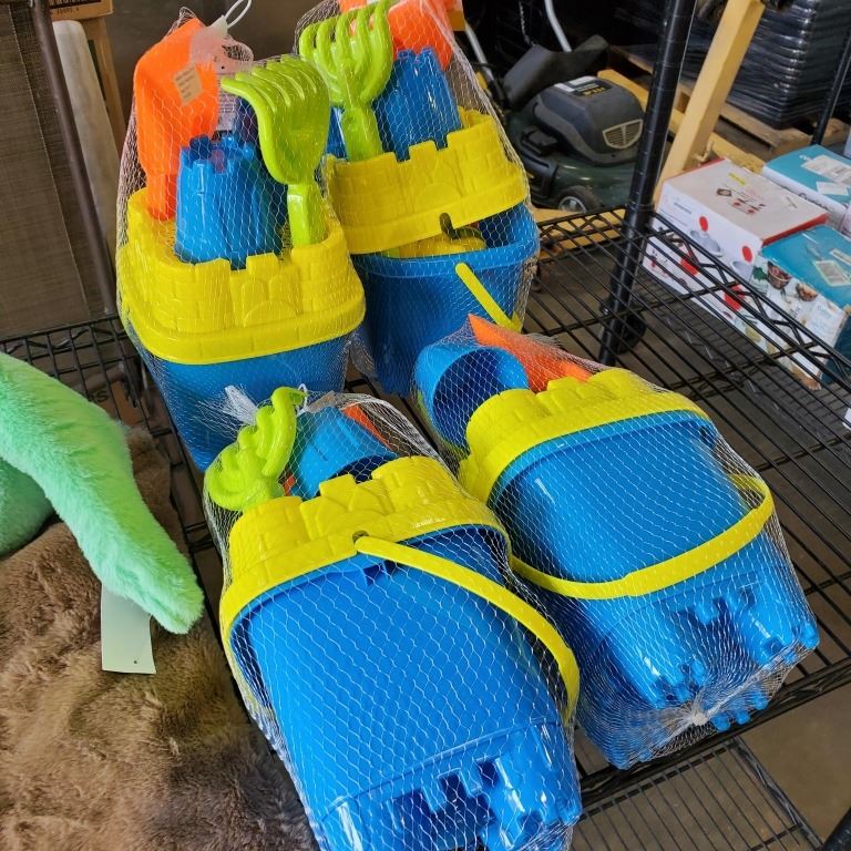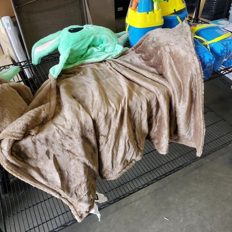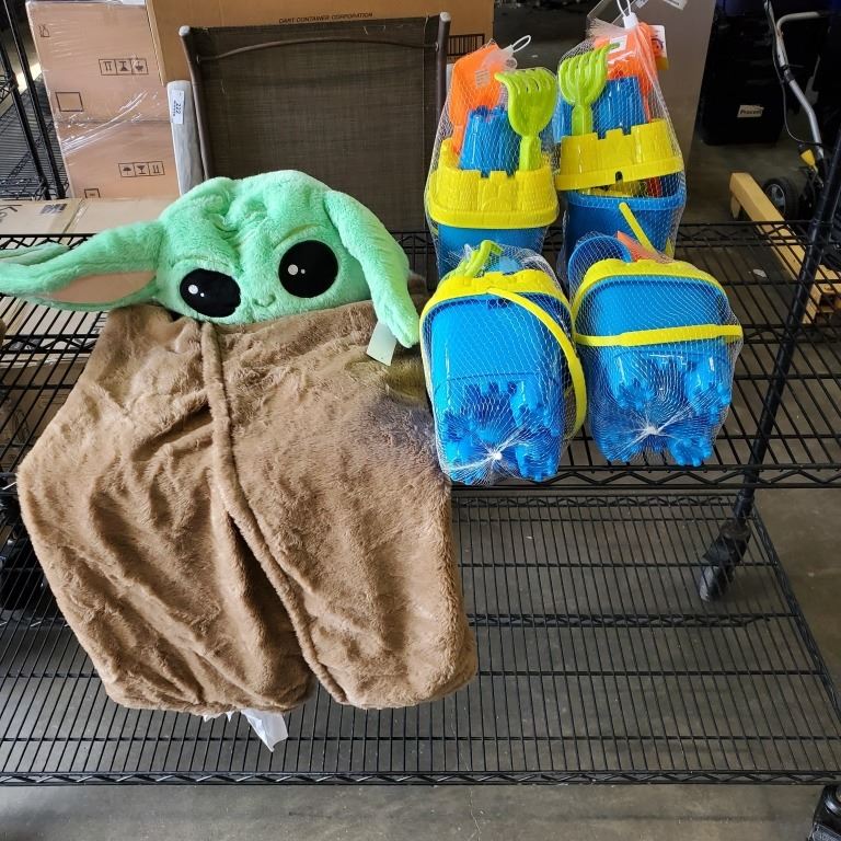 AS NEW BABY YODA HOODED BLANKET AND 4 PRETEX BEACH BUCKET SETS