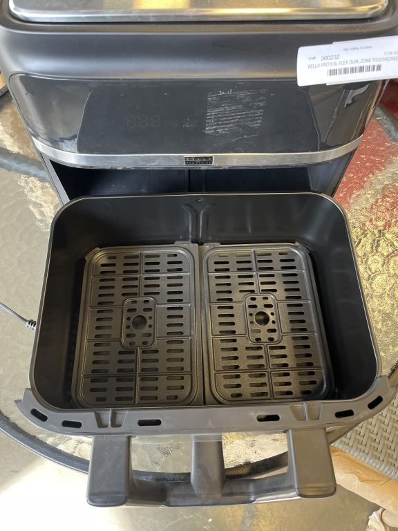 AS NEW BELLA PRO 8.5L FLEX DUAL ZONE TOUCHSCREEN AIR FRYER - TESTED WORKING, RETAIL $349
