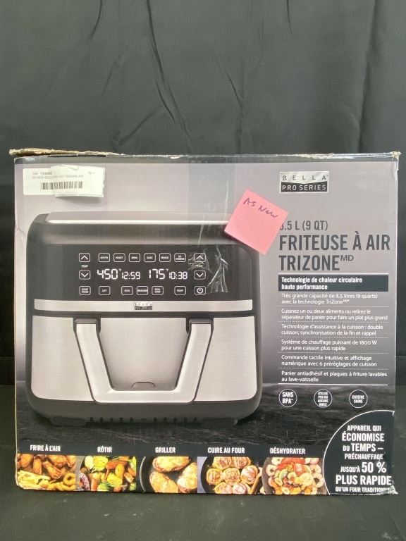 AS NEW BELLA PRO 9QT TRIZONE AIR FRYER - TESTED AND WORKING - RETAIL $349