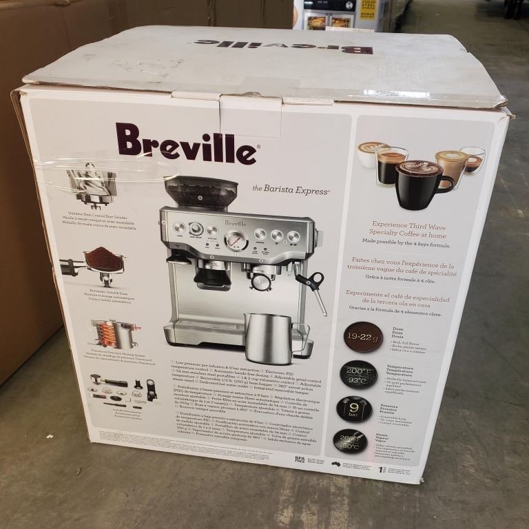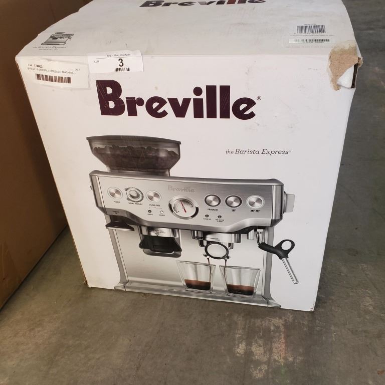 AS NEW BREVILLE BARISTA ESPRESSO MACHINE - TESTED WORKING, RETAIL $799