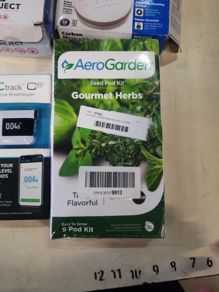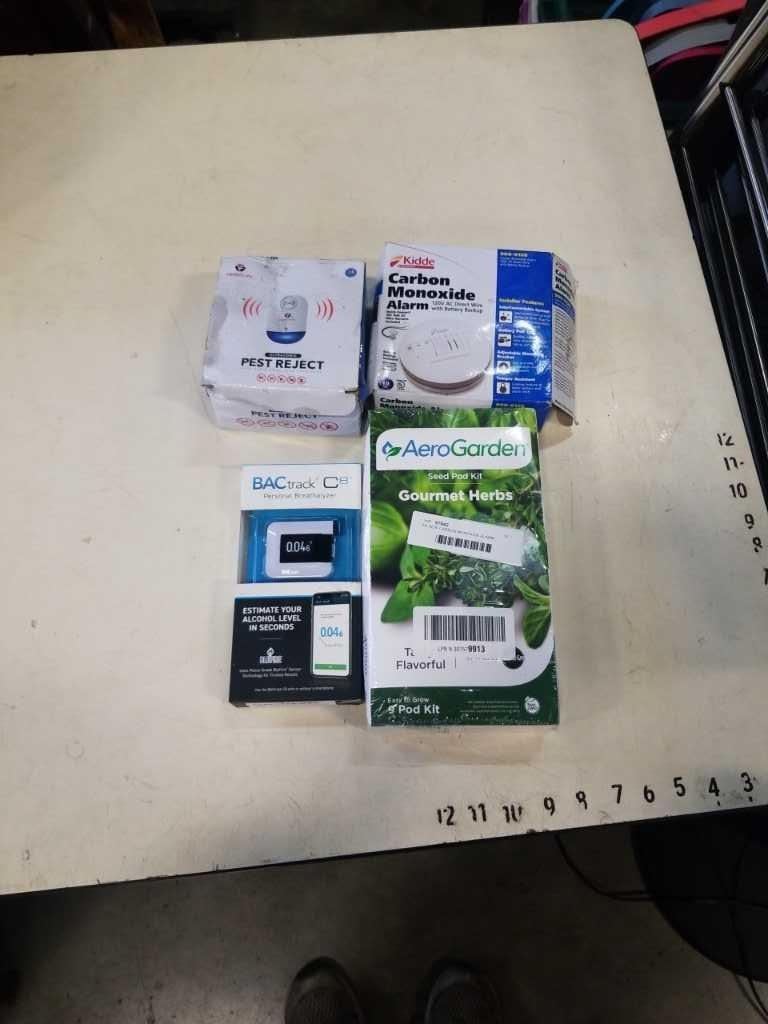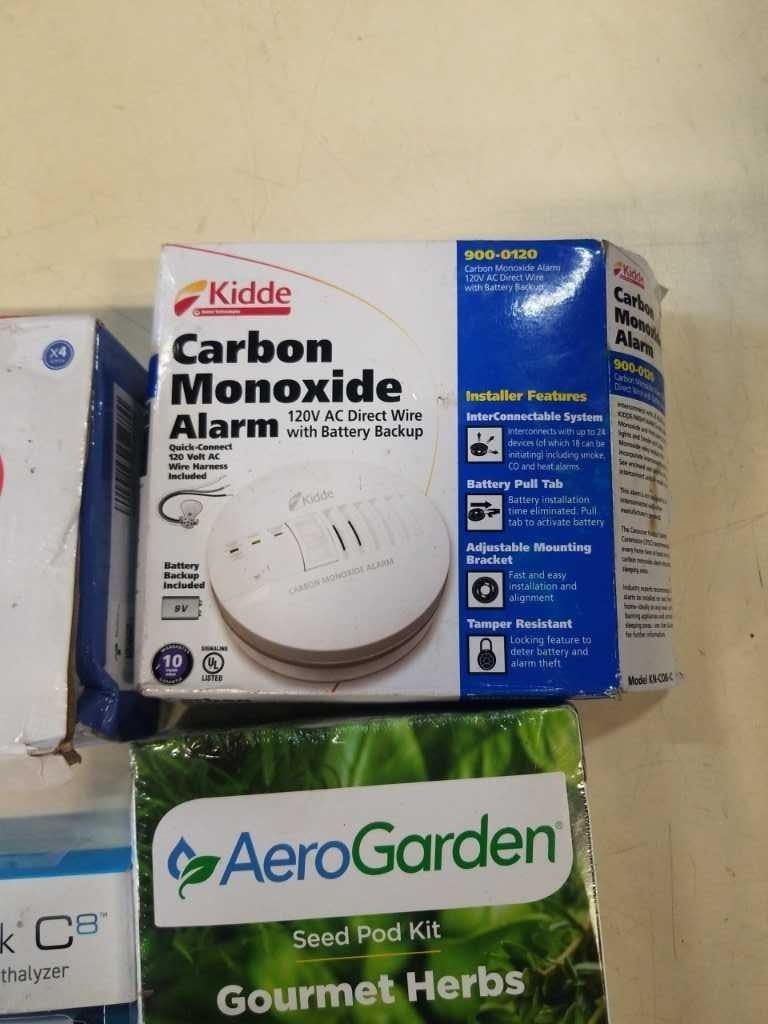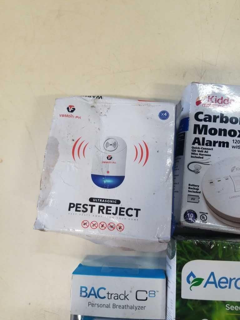 AS NEW CARBON MONOXIDE ALARM, PERSONAL BREATHILIZER, PEST REJECTOR AND NEW AERO POD SEED POD KIT