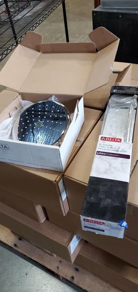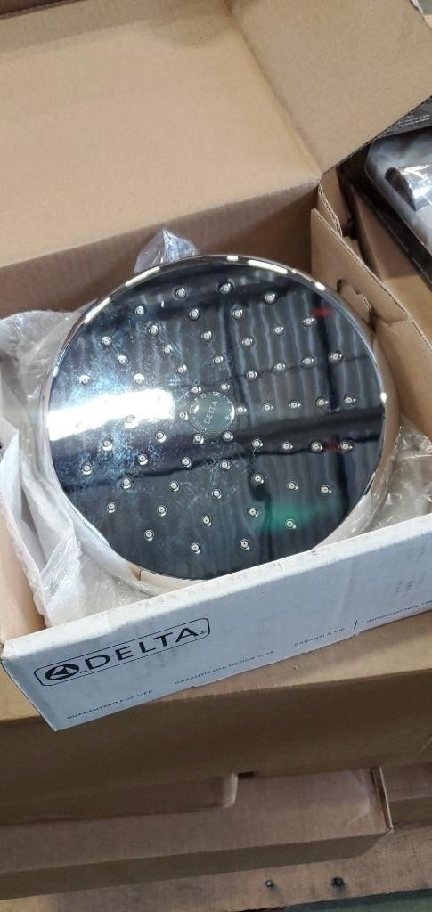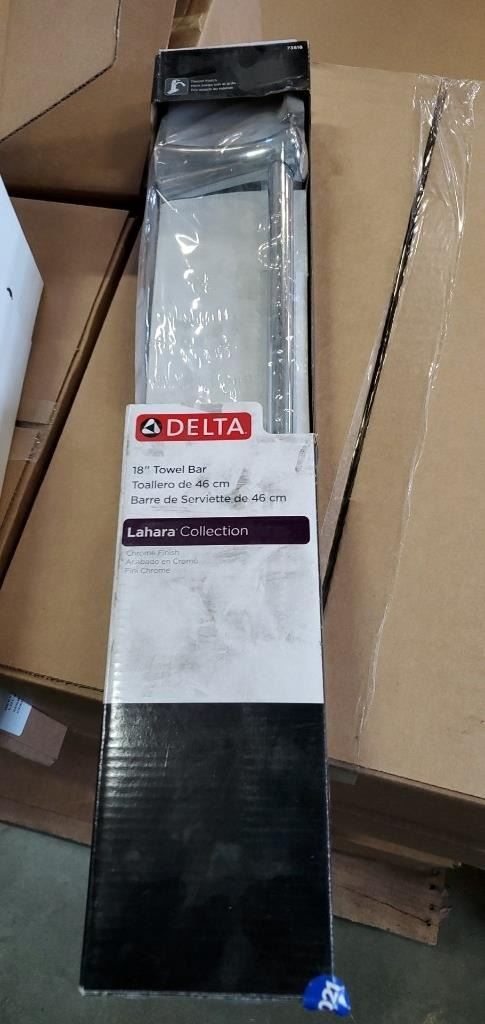 AS NEW DELTA TOUCH CLEAN RAIN CAN SHOWER HEAD AND 18" TOWEL BAR