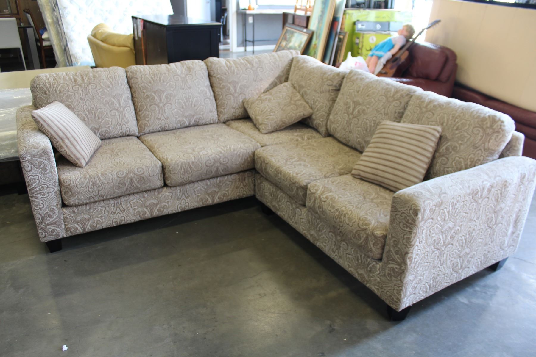 AS NEW DELUX DESIGN 2 PIECE CONTEMPORARY SECTIONAL SOFA WITH ACCENT PILLOWS