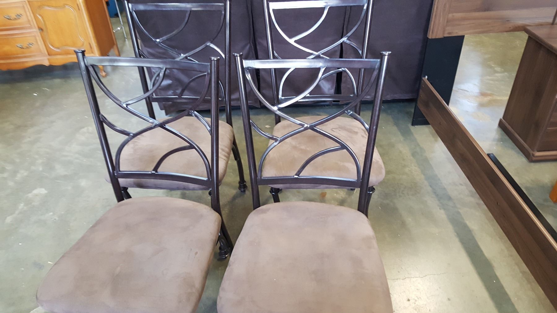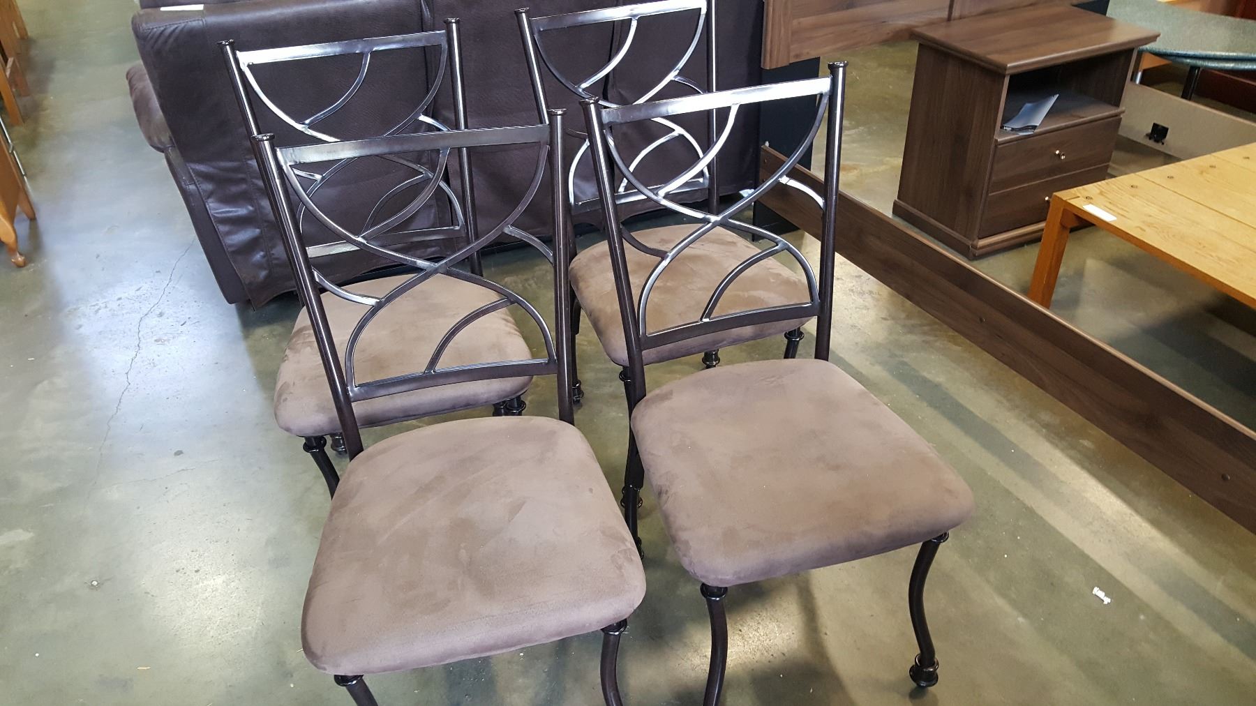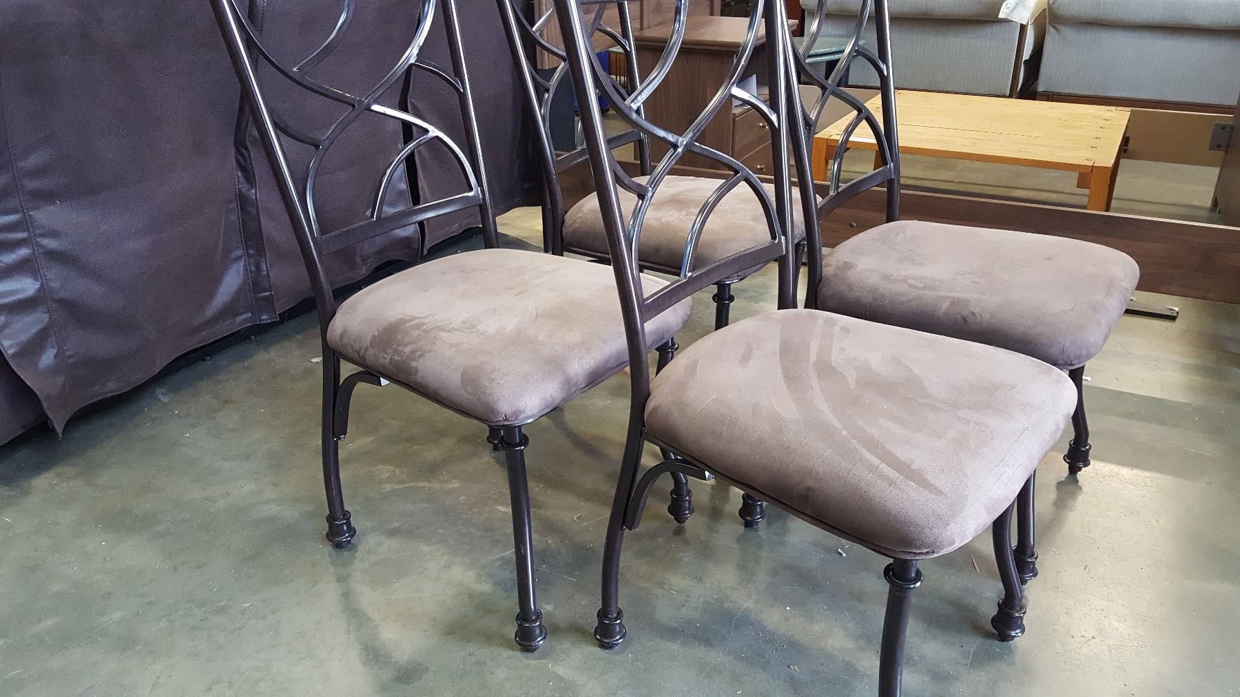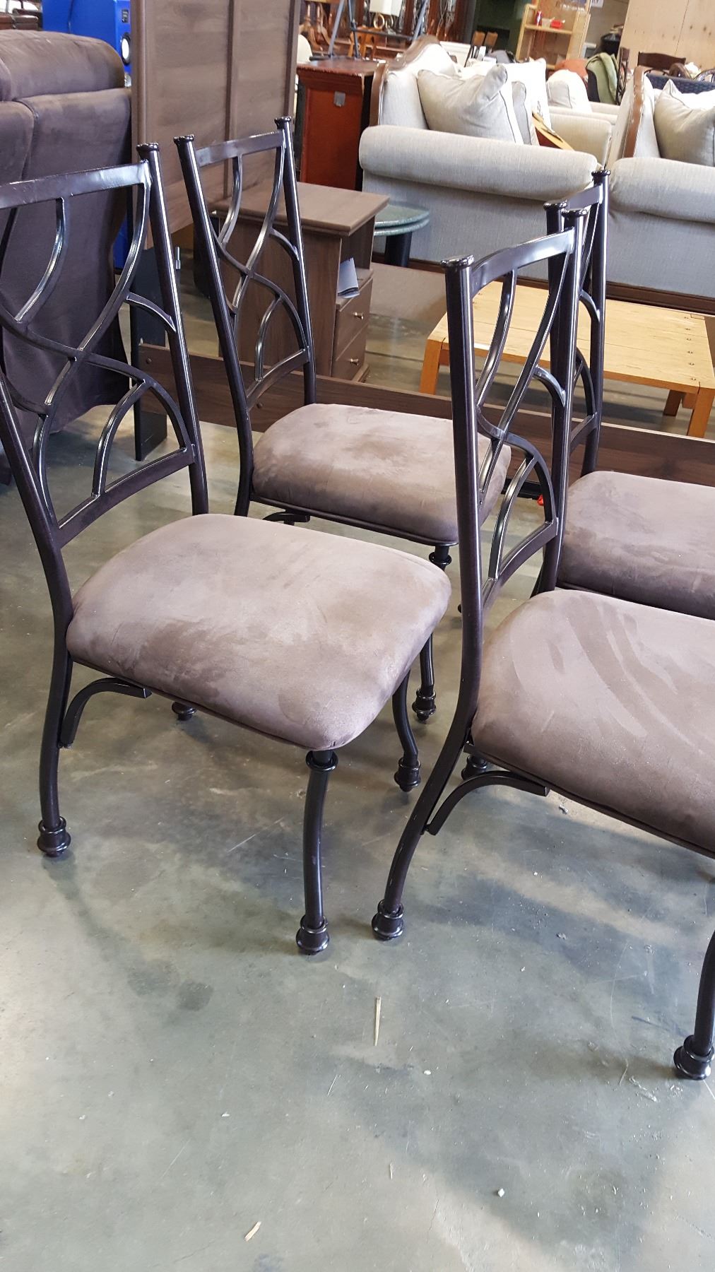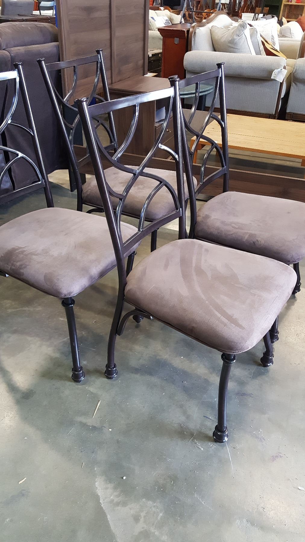 AS NEW FLOOR MODEL ASHLEY SET OF 4 BLACK IRON AND BROWN MICROFIBRE SEAT DINING CHAIRS
