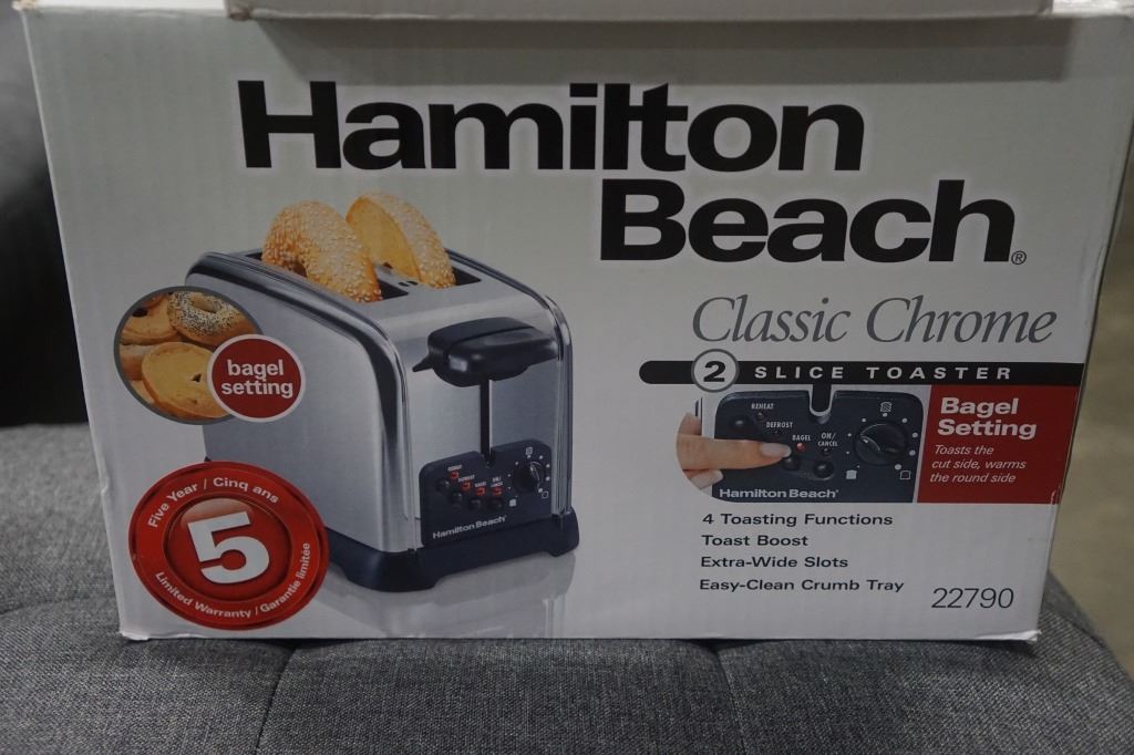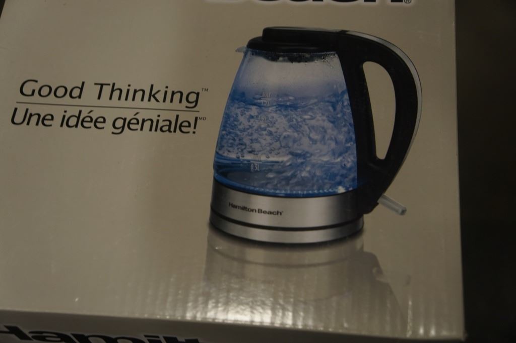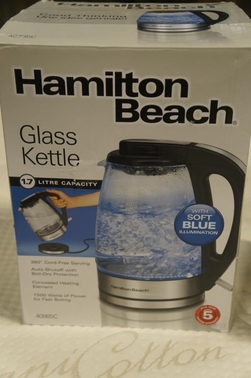 AS NEW HAMILTON BEACH GLASS KETTLE AND CLASSIC CHROME TOASTER - WORKING