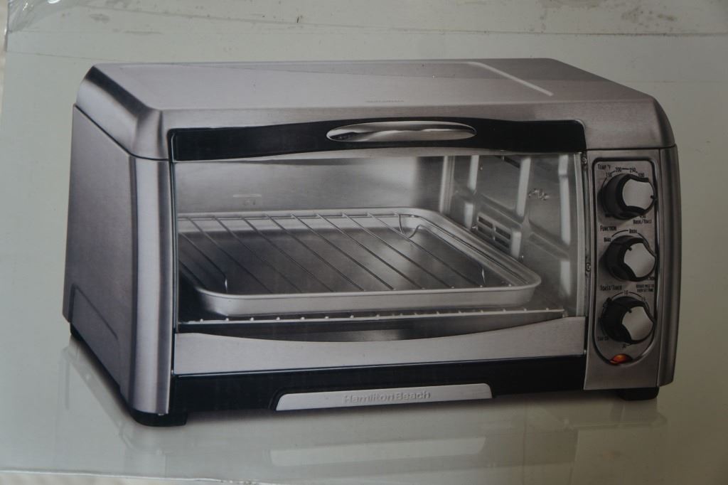 AS NEW HAMILTON BEACH STAINLESS TOASTER OVEN - WORKING