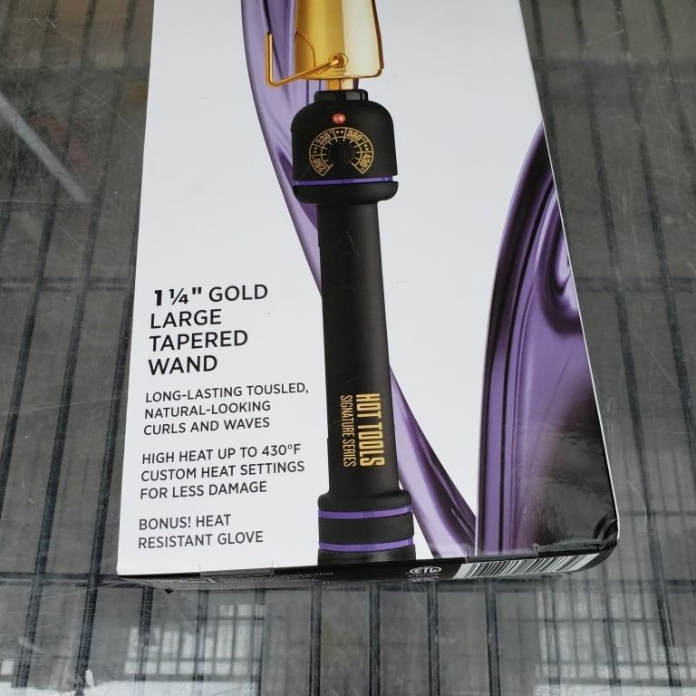 AS NEW HOT TOOLS 1 1/4" GOLD LARGE TAPERED WAND - RETAIL $59