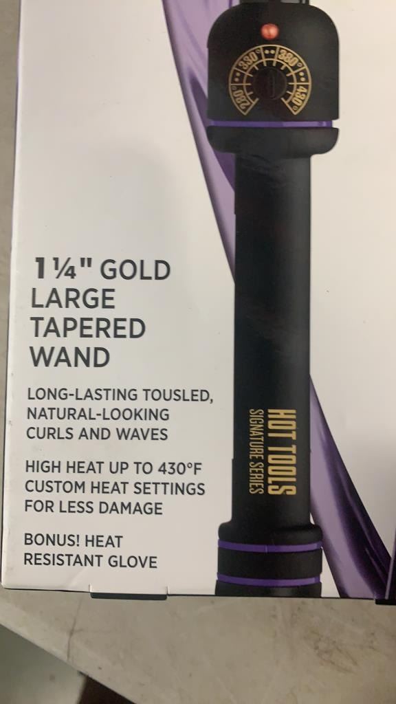 AS NEW HOT TOOLS 1 1/4 INCH GOLD LARGE CURLING IRON WAND