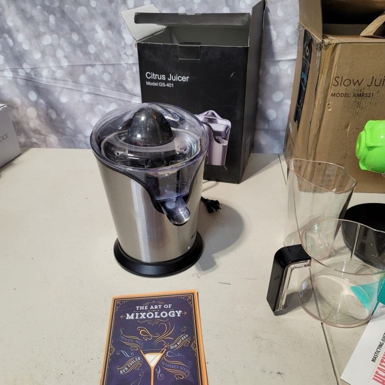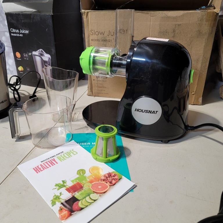 AS NEW HOUSNAT SLOW JUICER AND CITRUS JUICER BOTH TESTED AND WORKING RETAIL $375