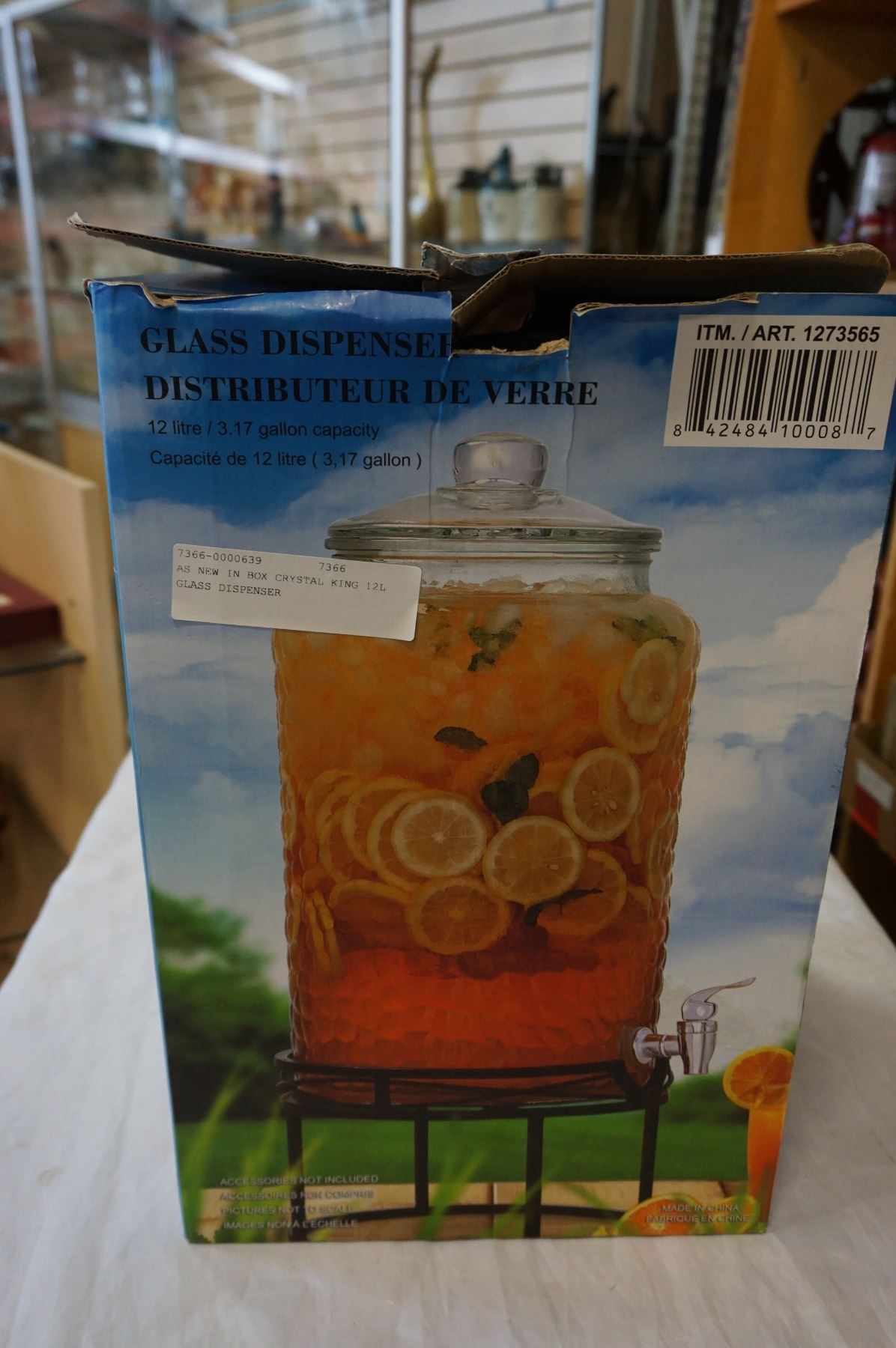 AS NEW IN BOX CRYSTAL KING 12L GLASS DISPENSER